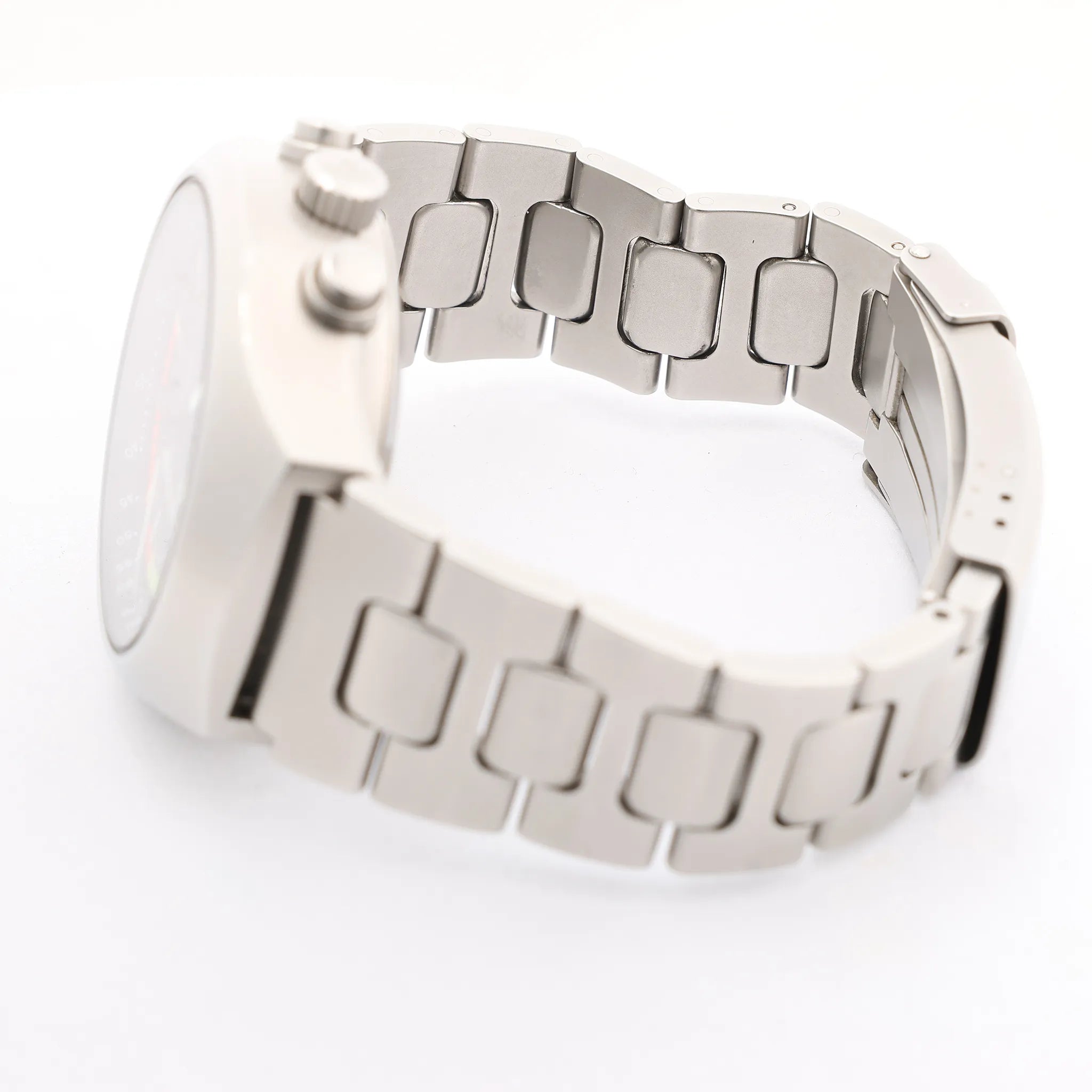 Brand: SINNModel: Achilles ChronographReference: 157.EZM-4Serial No.: 157.12859Condition: ExcellentCondition Details: Light signs of use, including subtle surface marks barely visible to the eye. Please see photos for the exact condition.Dial Colour: BlackCase Material: Stainless Steel Starp Colour: SilverStrap material: Stainless Steel Movement: AutomaticFace Width: 44 x 40 mmApprox. max circumference: 19 cm Comes With: Box, brand booklet, certificate, extra links, service card