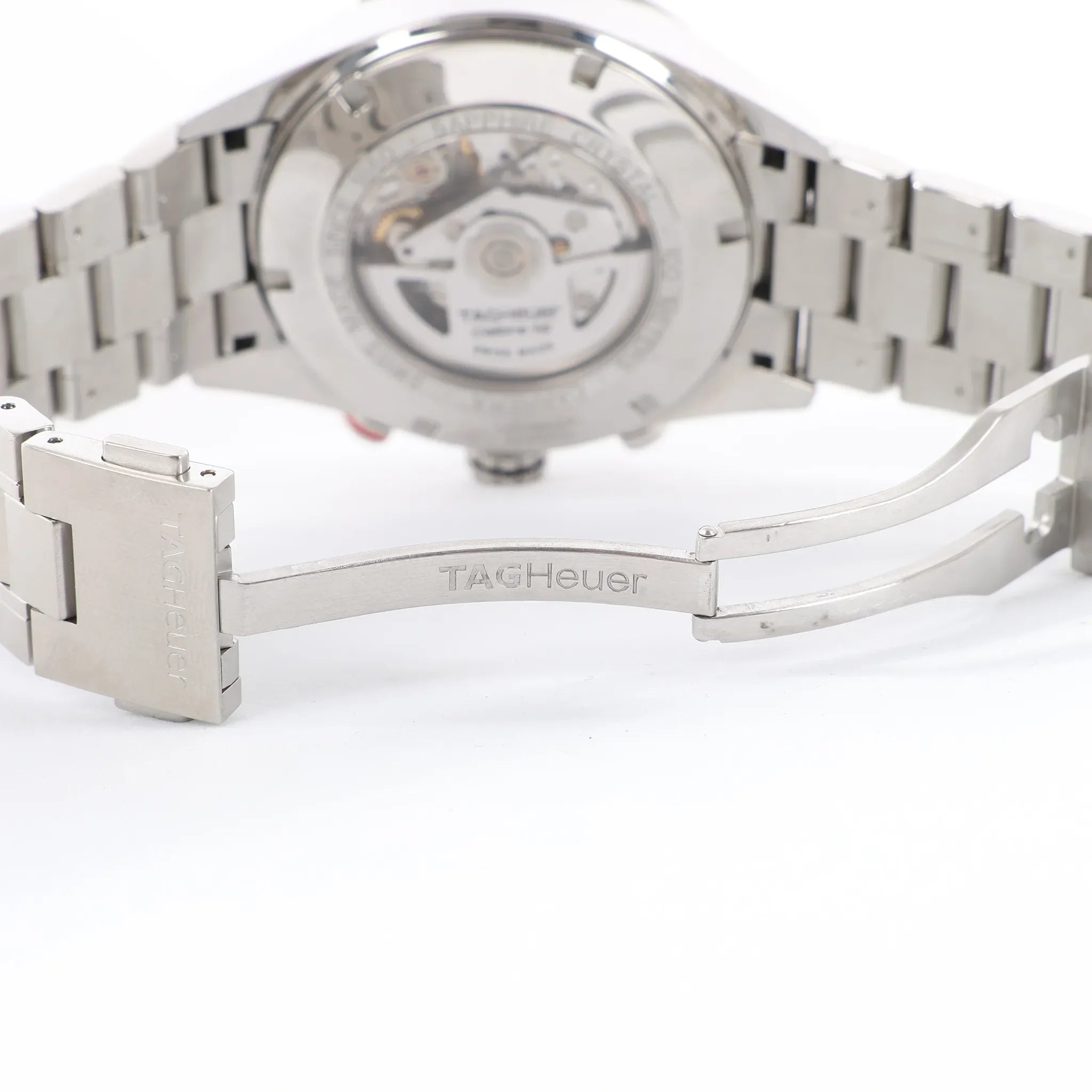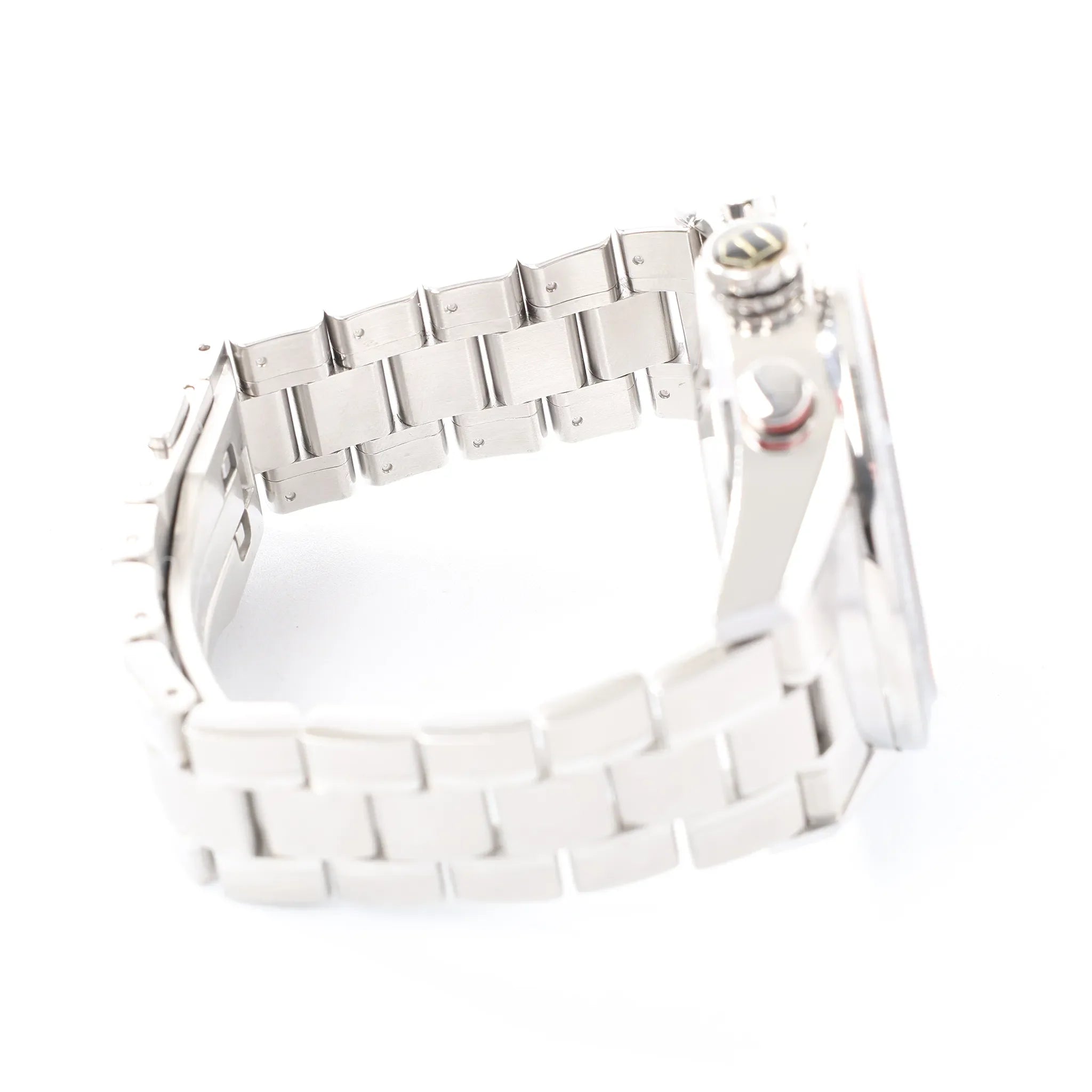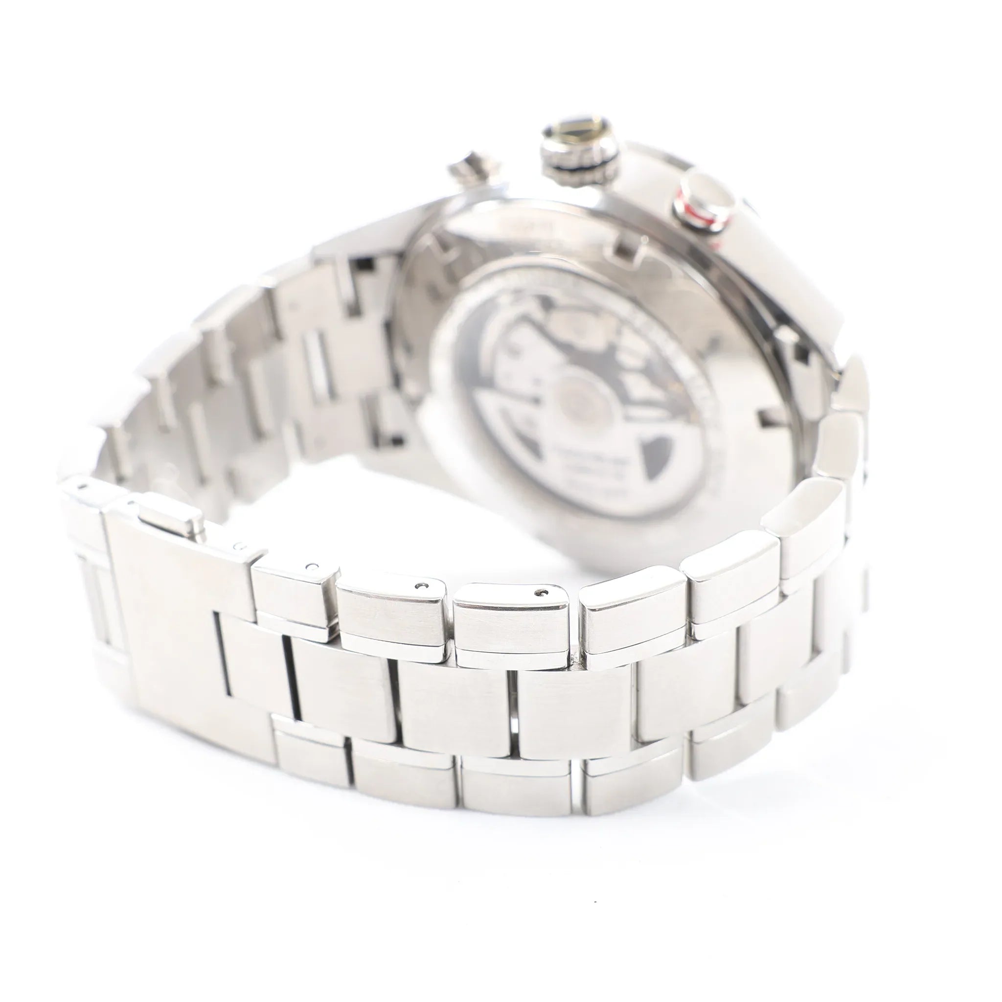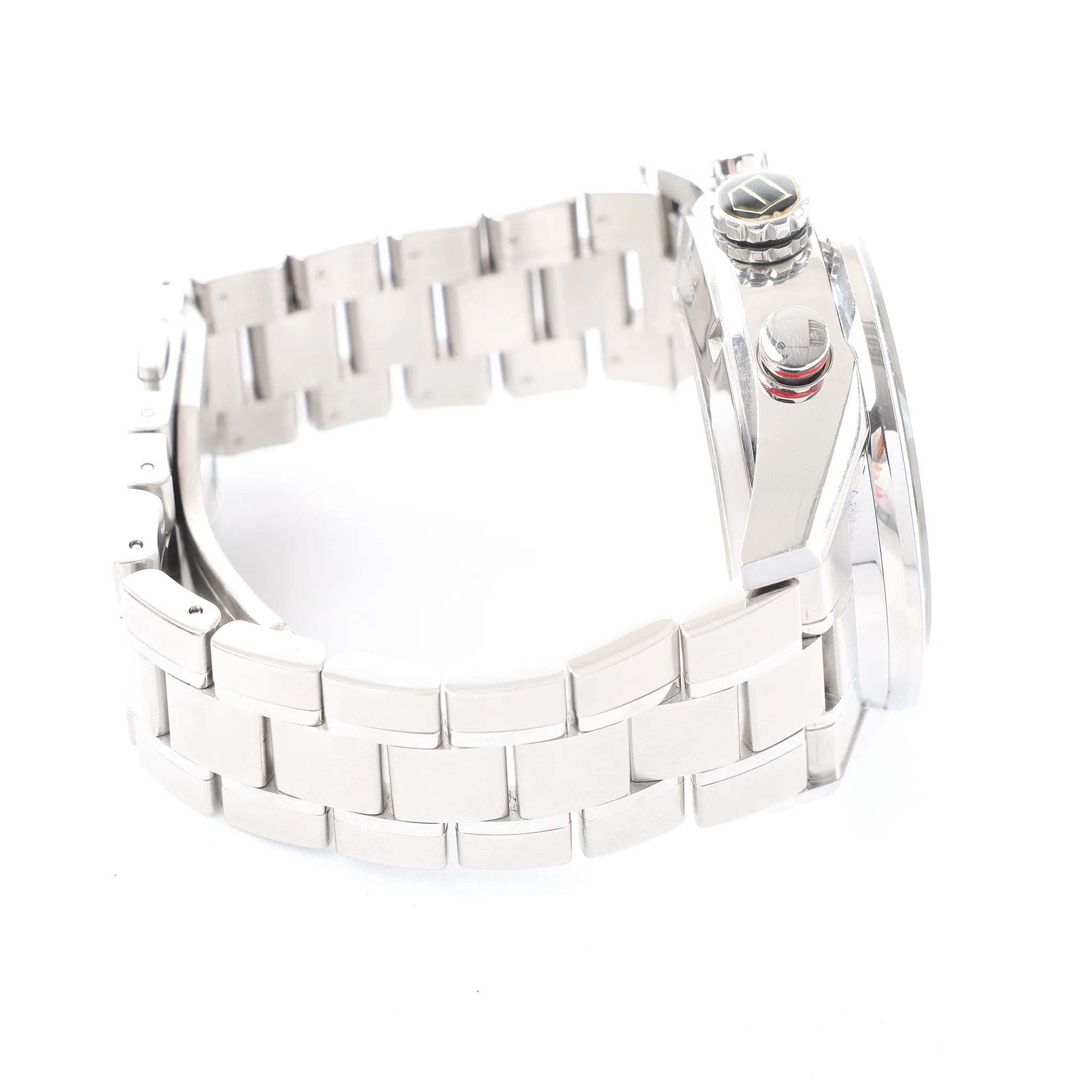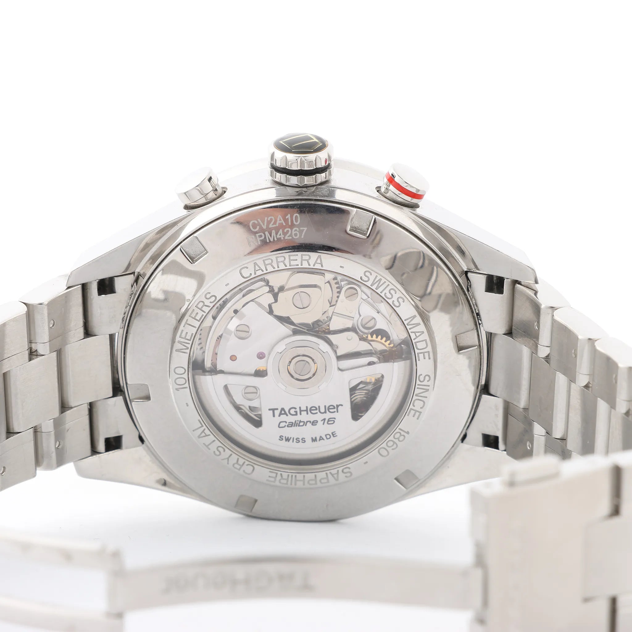 Brand: TAG Heuer Model: Carrera Calibre 16Reference: CV2A10.BA0796Serial No.: RPM4267 Condition: ExcellentCondition Details: Excellent overall condition with almost no visible signs of use. Barely noticeable hairline marks may be present, but they are not visible to the naked eye. Please see photos for details. Dial Colour: BlackDial Material: Stainless steel Starp Colour: SilverStrap material: Steel Movement: AutomaticFace Diameter: 44 mmApprox. circumference: 18.5 cmComes With: Box (pillow damaged), Papers, Extra links, Service card