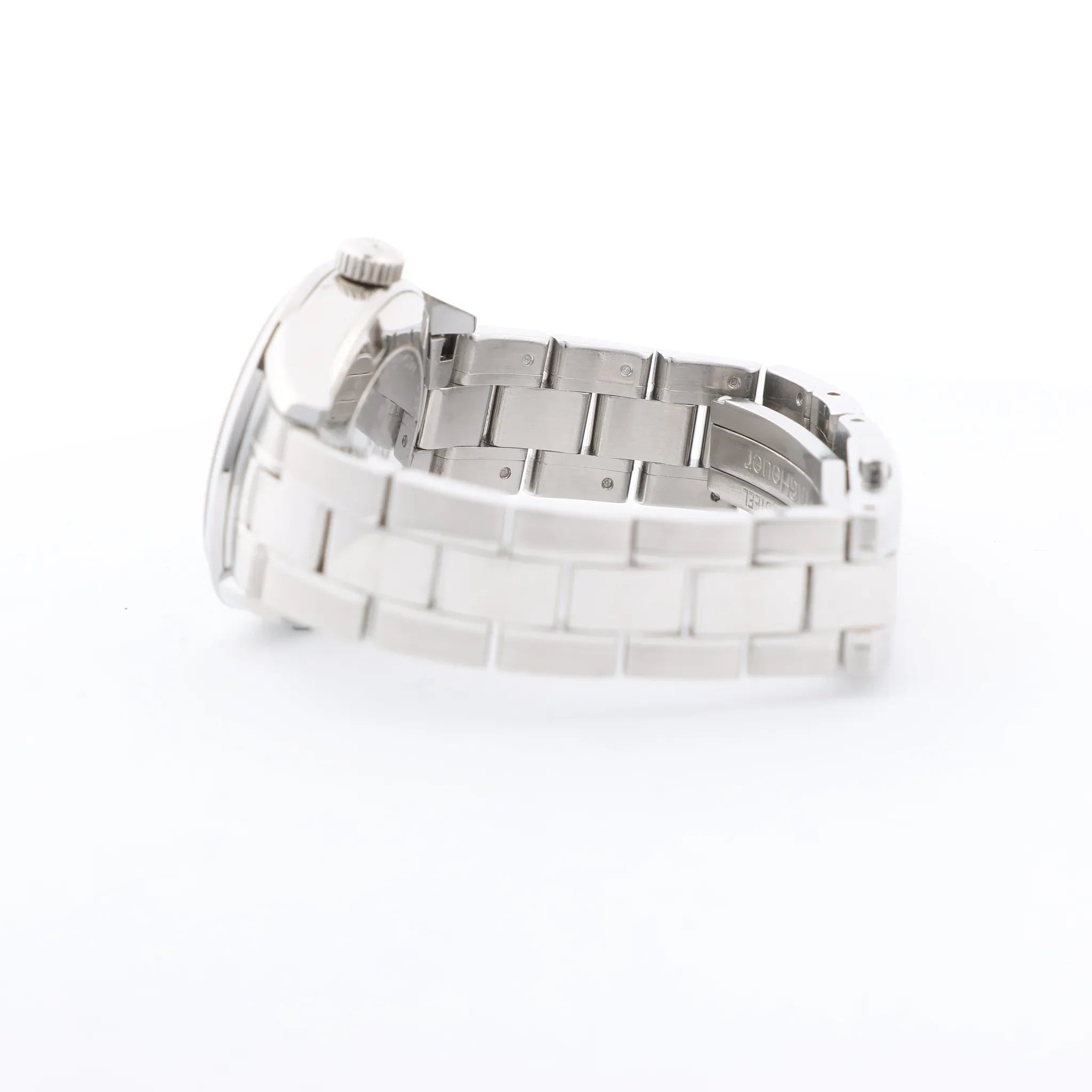The TAG Heuer Carrera WV1410 is a sleek stainless steel quartz watch featuring a black dial with diamond hour markers. A refined blend of Swiss precision and modern elegance, perfect for everyday luxury.