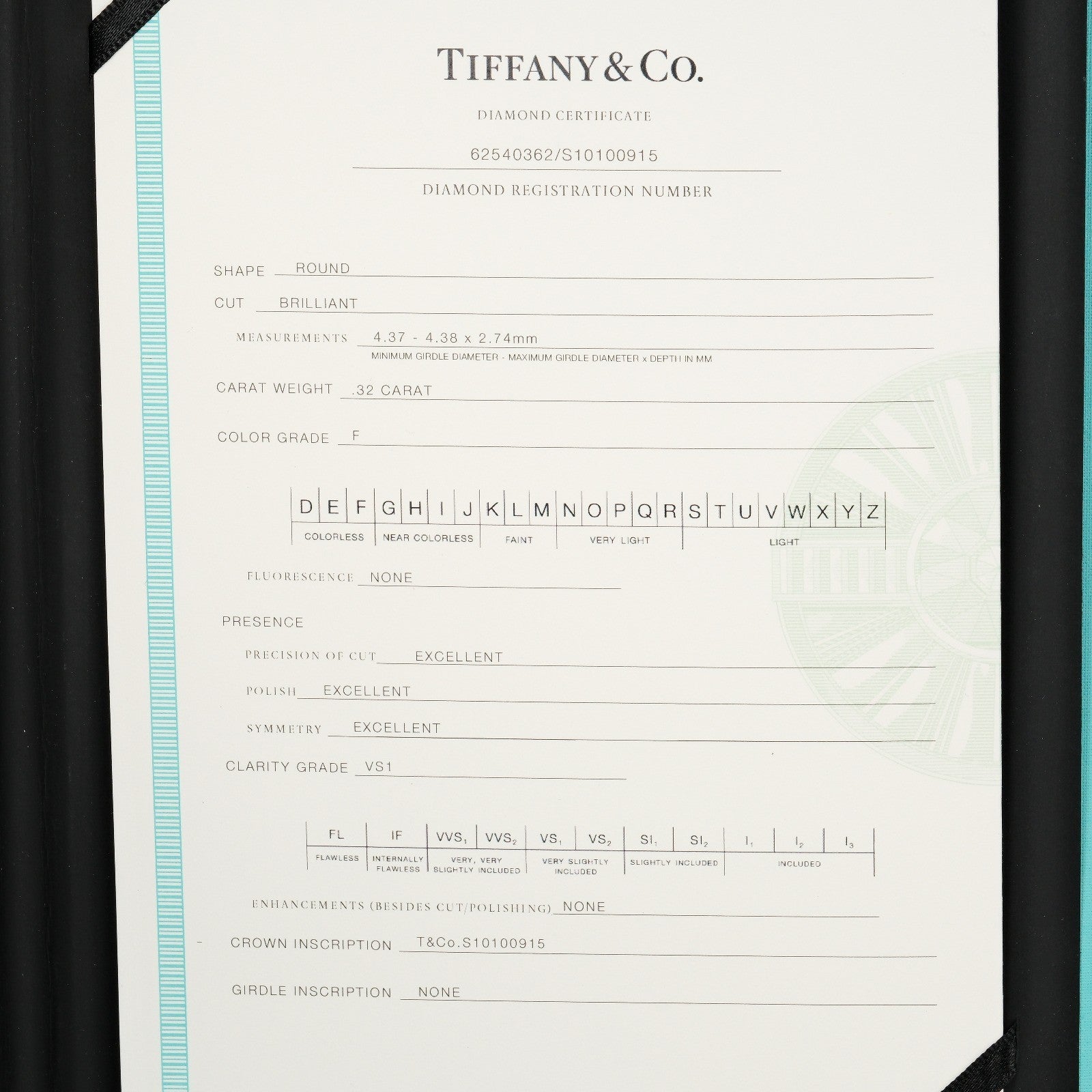 Brand : Tiffany & Co. Model : Novo Solitaire Ring Style : Platinum with Diamonds and Cushion Cut I/VS2 Diamond Serial number : 62540329 Inclusions : Storage box,Outer case,Certificate