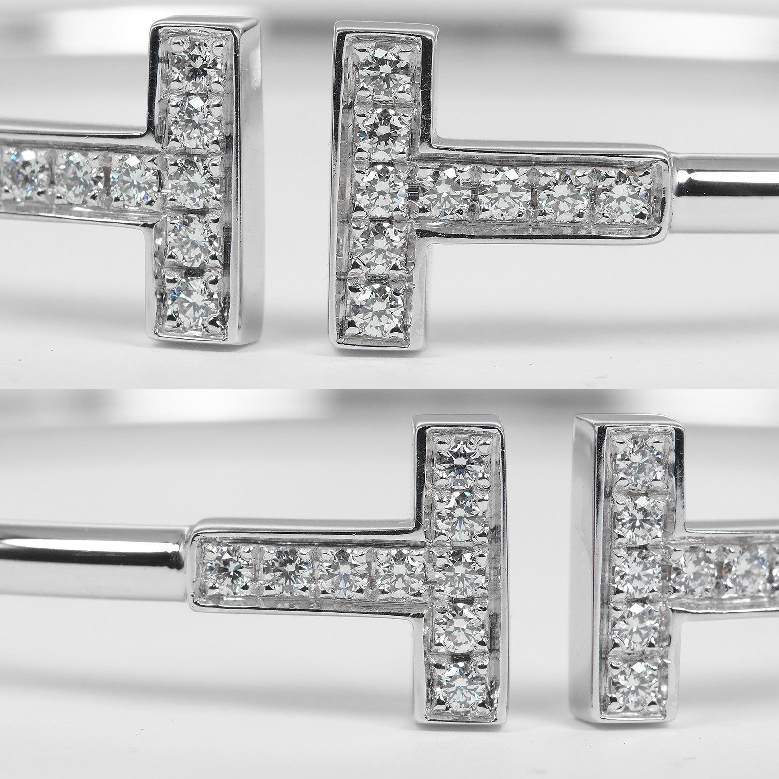Brand : Tiffany & co. Model : T wire bracelet Style : 18k white gold with diamonds Serial number : I181225010 Inclusions : Storage bags,outer case,repair certificate