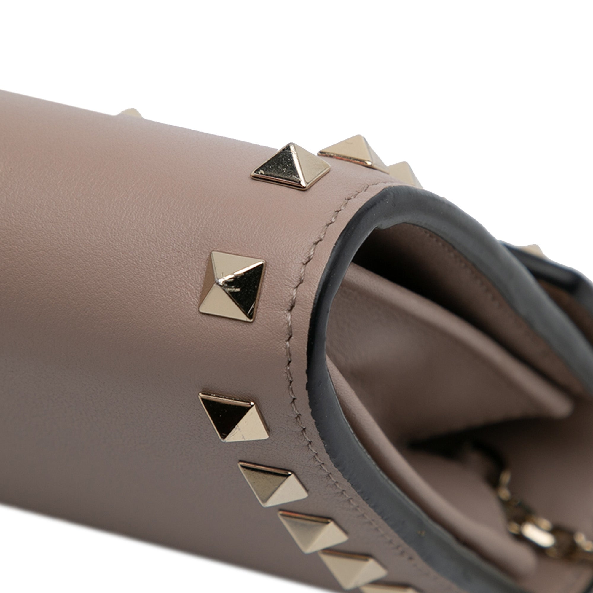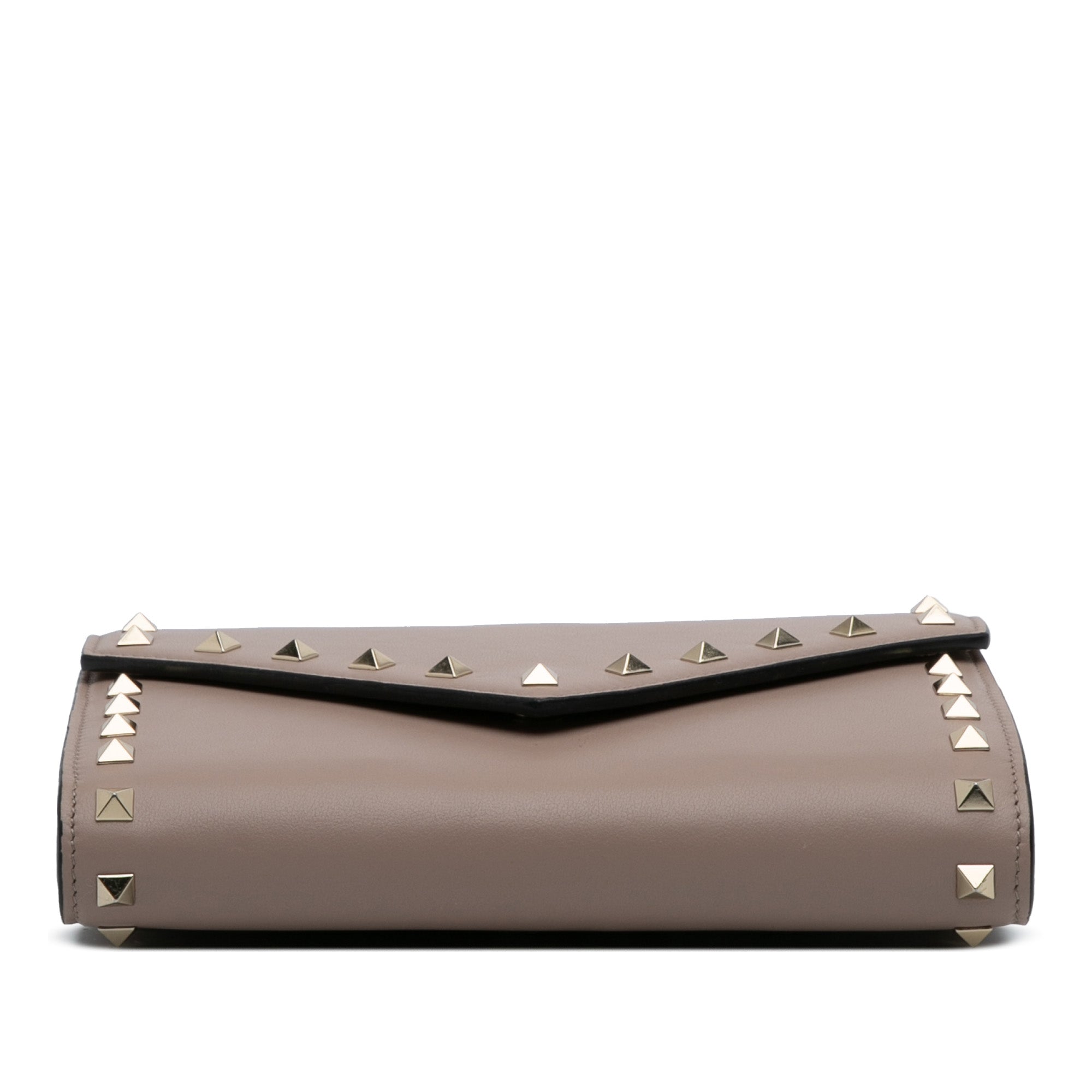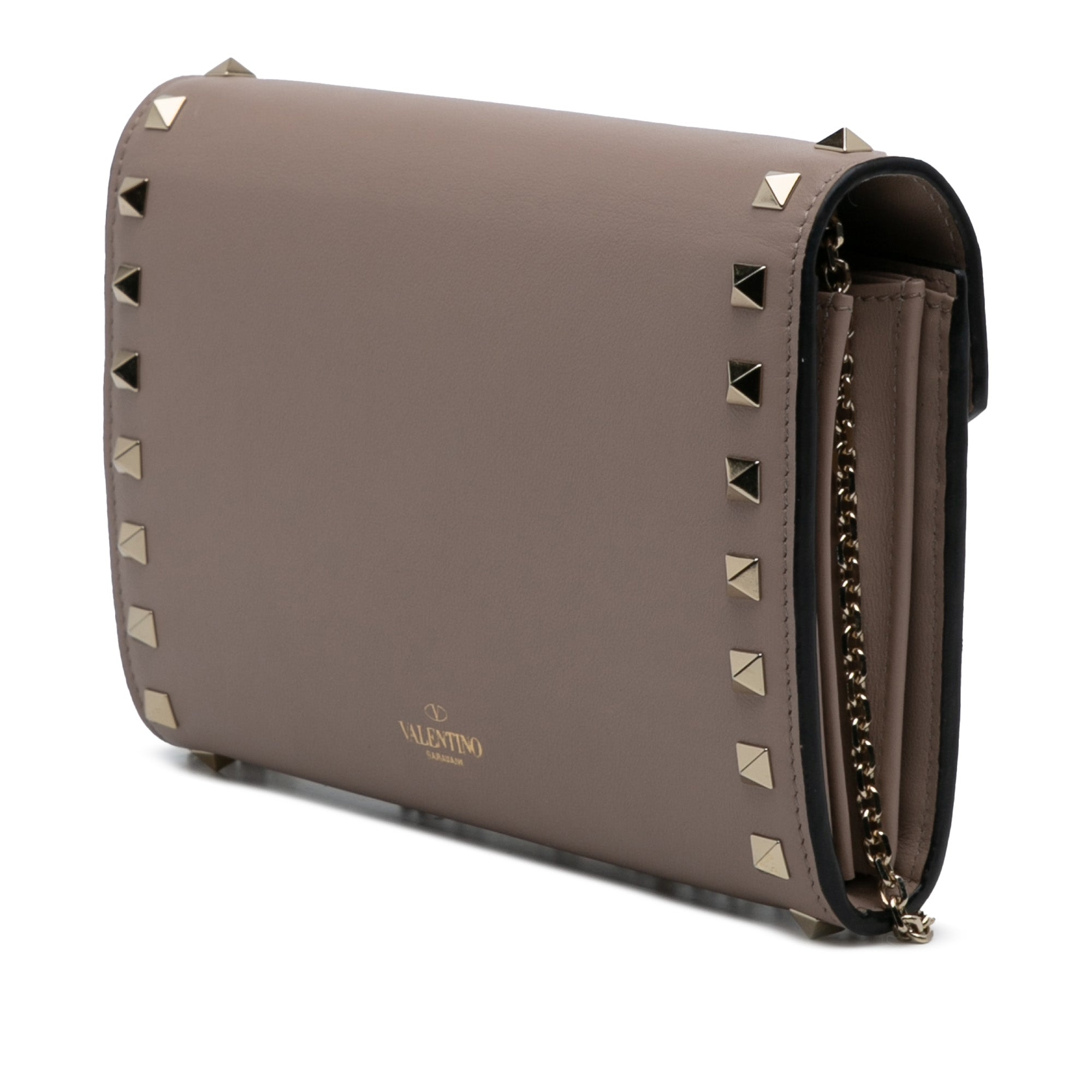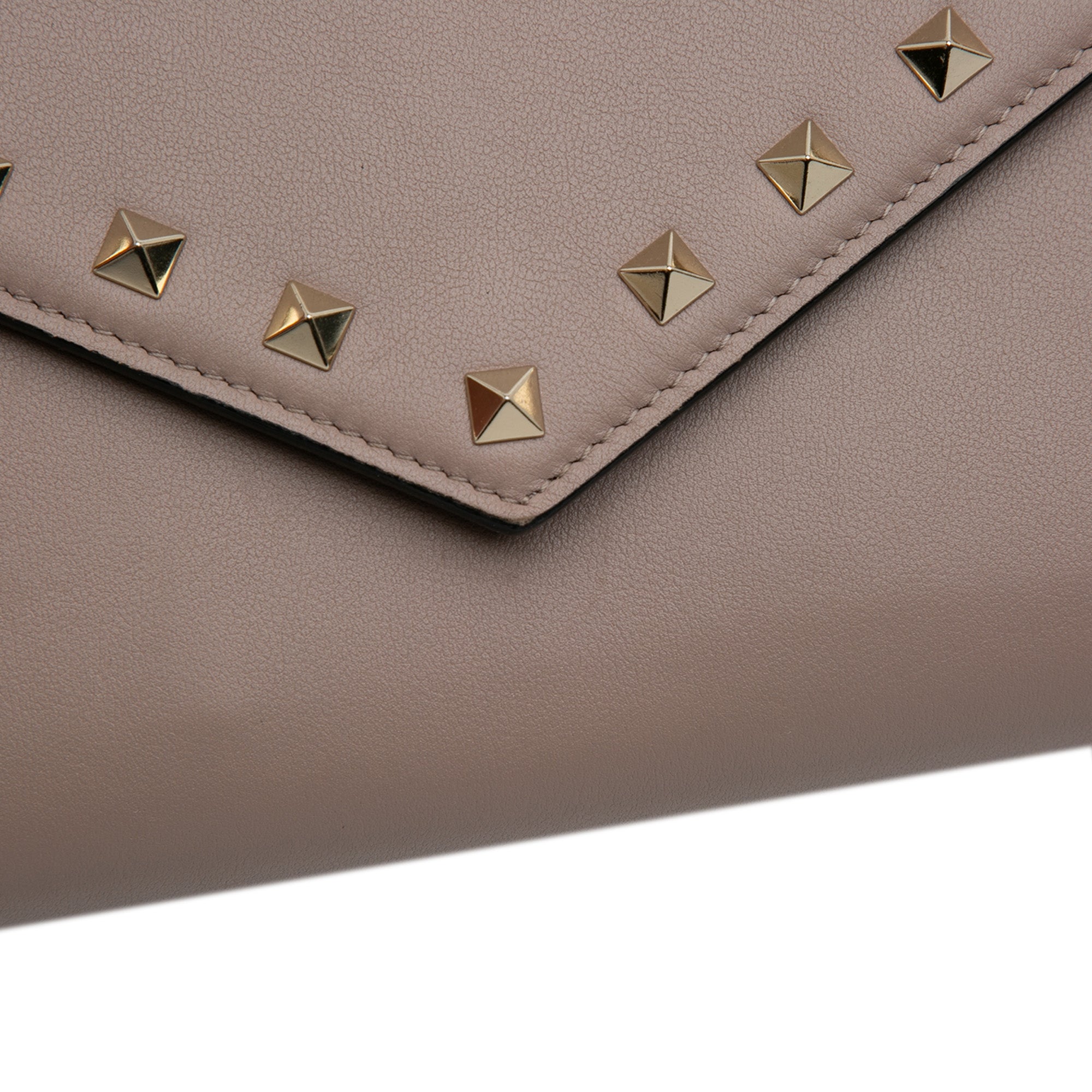 Valentino Calfskin Rockstud Envelope Wallet on Chain
