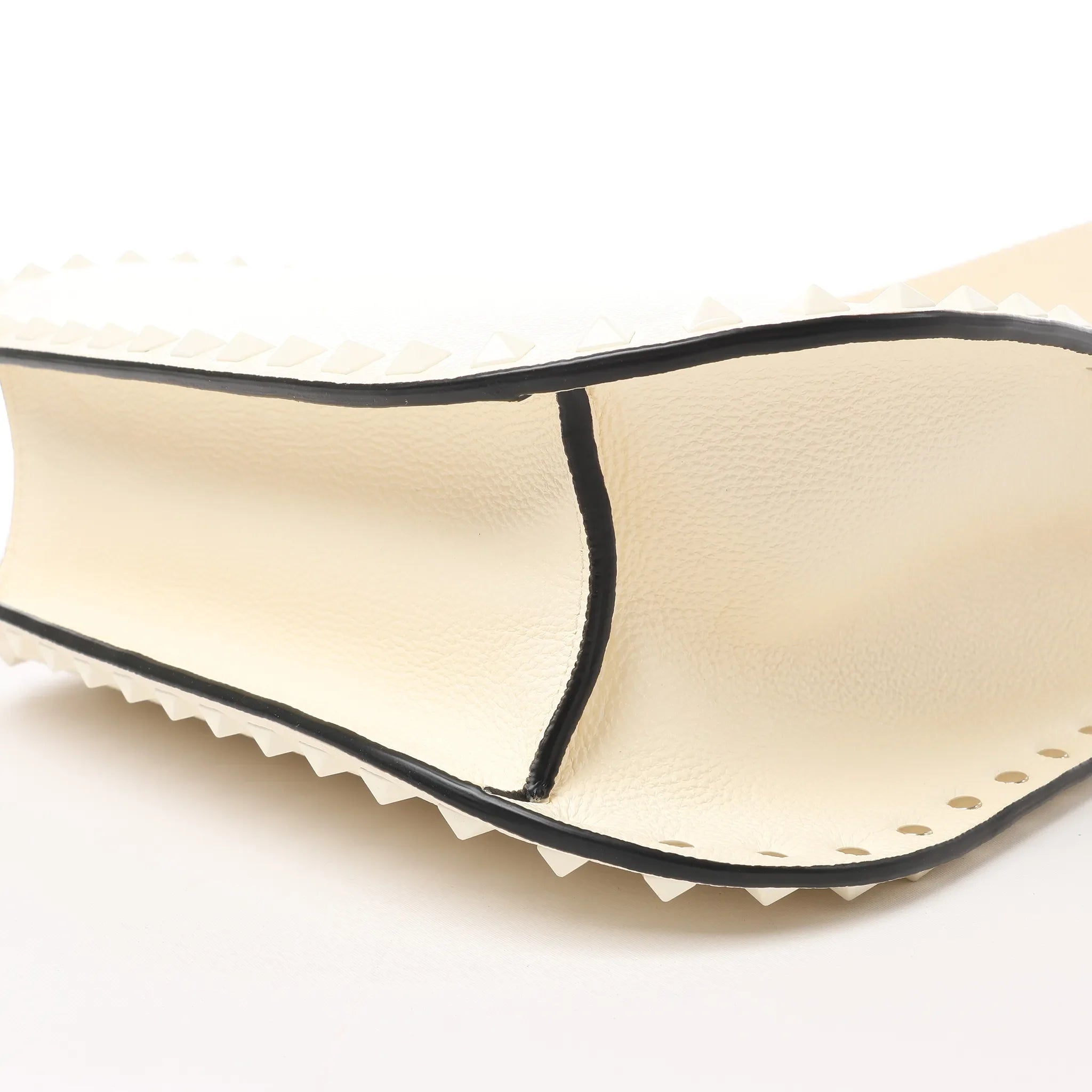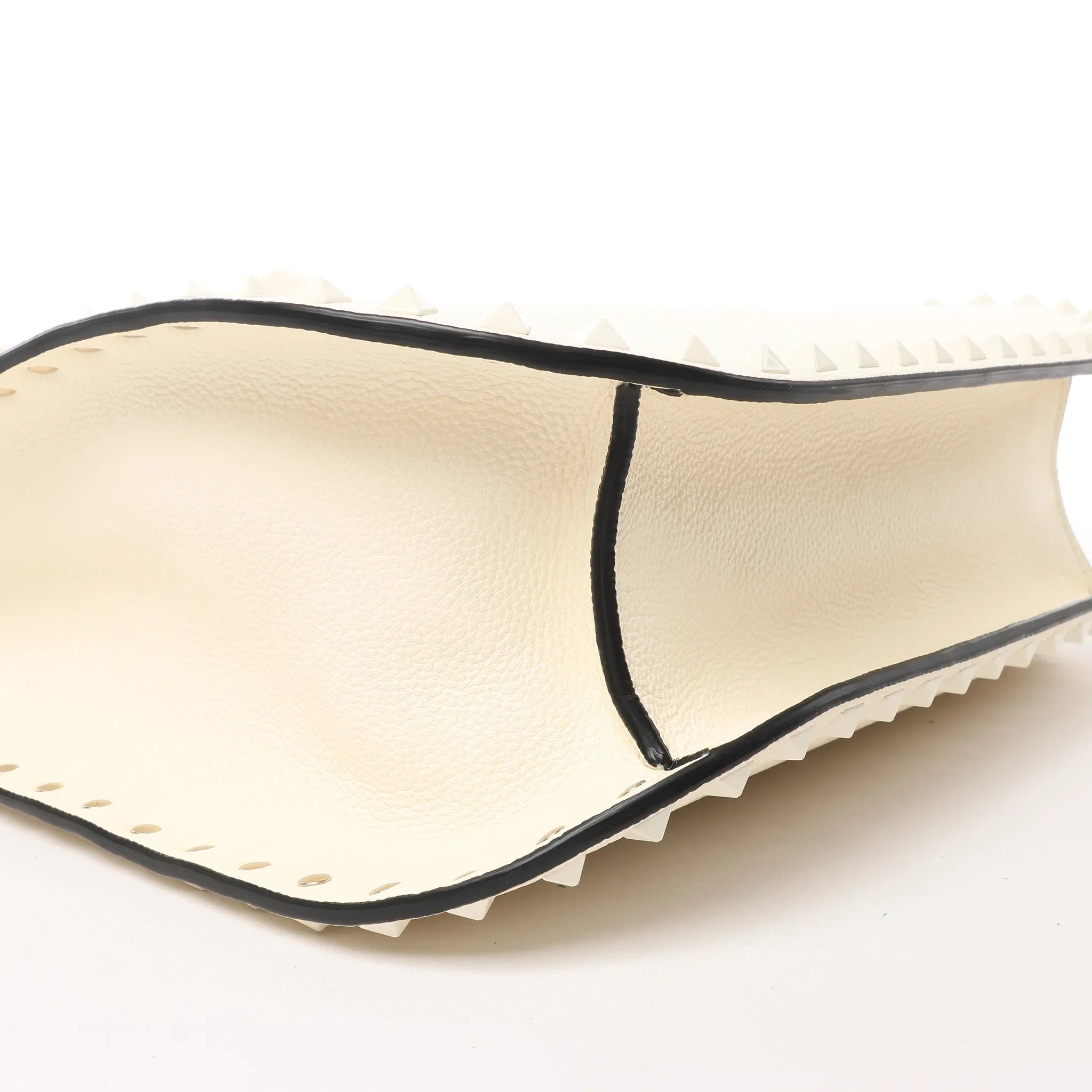Valentino Garavani Rockstud Leather Shoulder Bag in Ecru