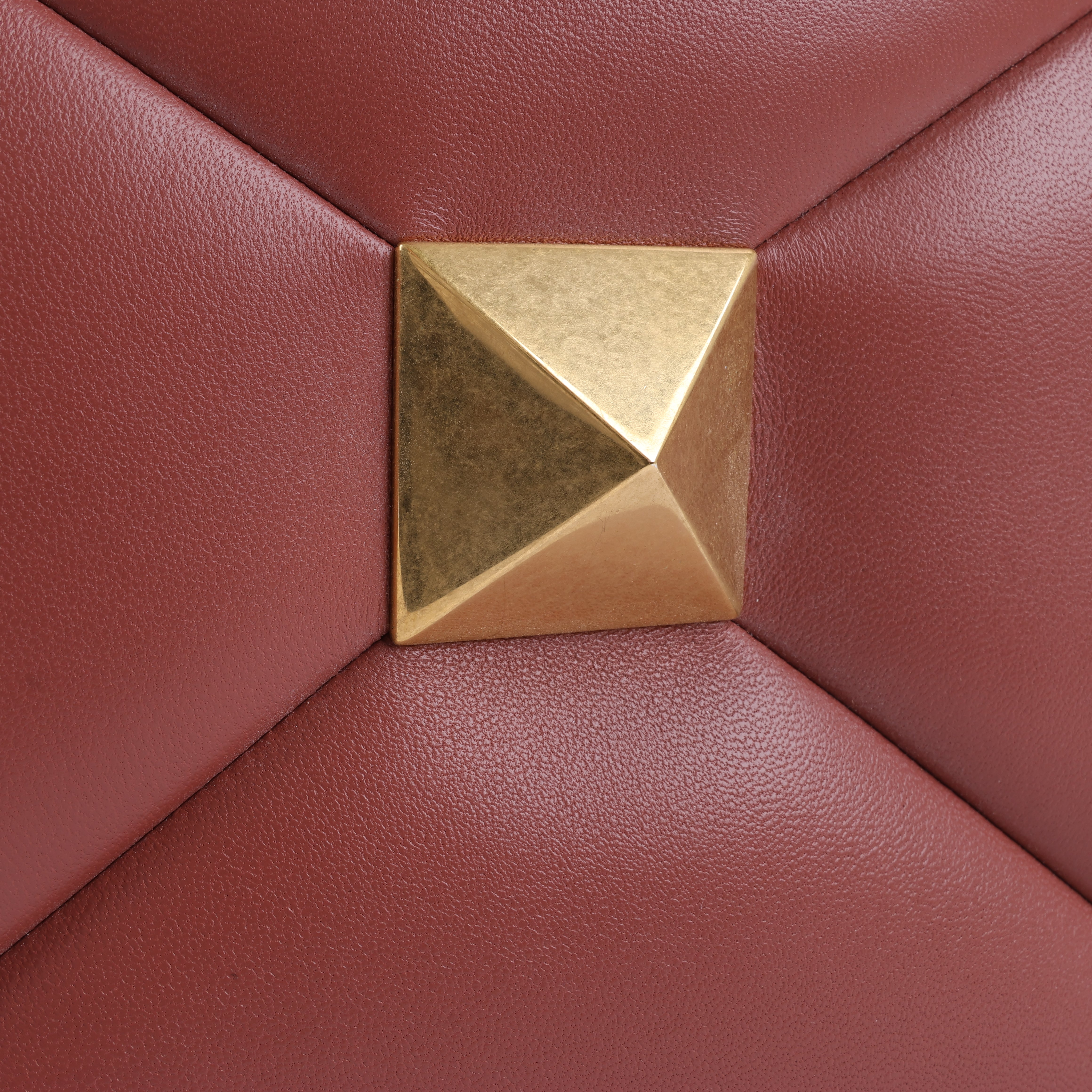 Elevate your look with the Valentino Garavani One Stud shoulder bag in rich chestnut leather. Featuring a bold gold-tone stud, top handles, and a detachable strap for versatile 2-way wear, this bag exudes modern sophistication and timeless charm. A true statement piece!
