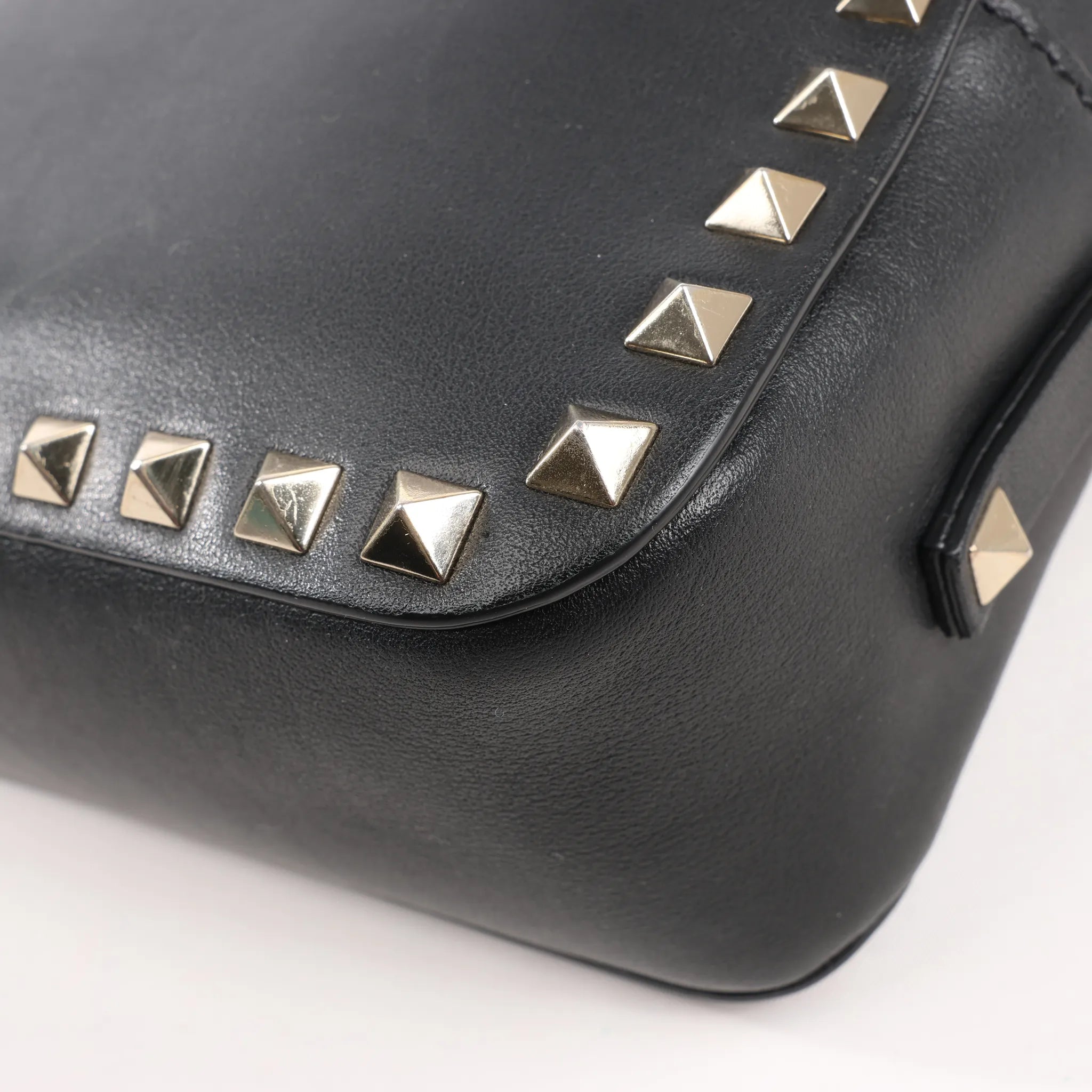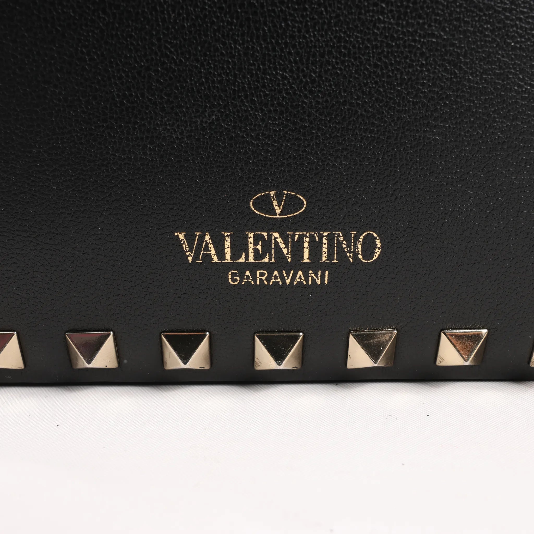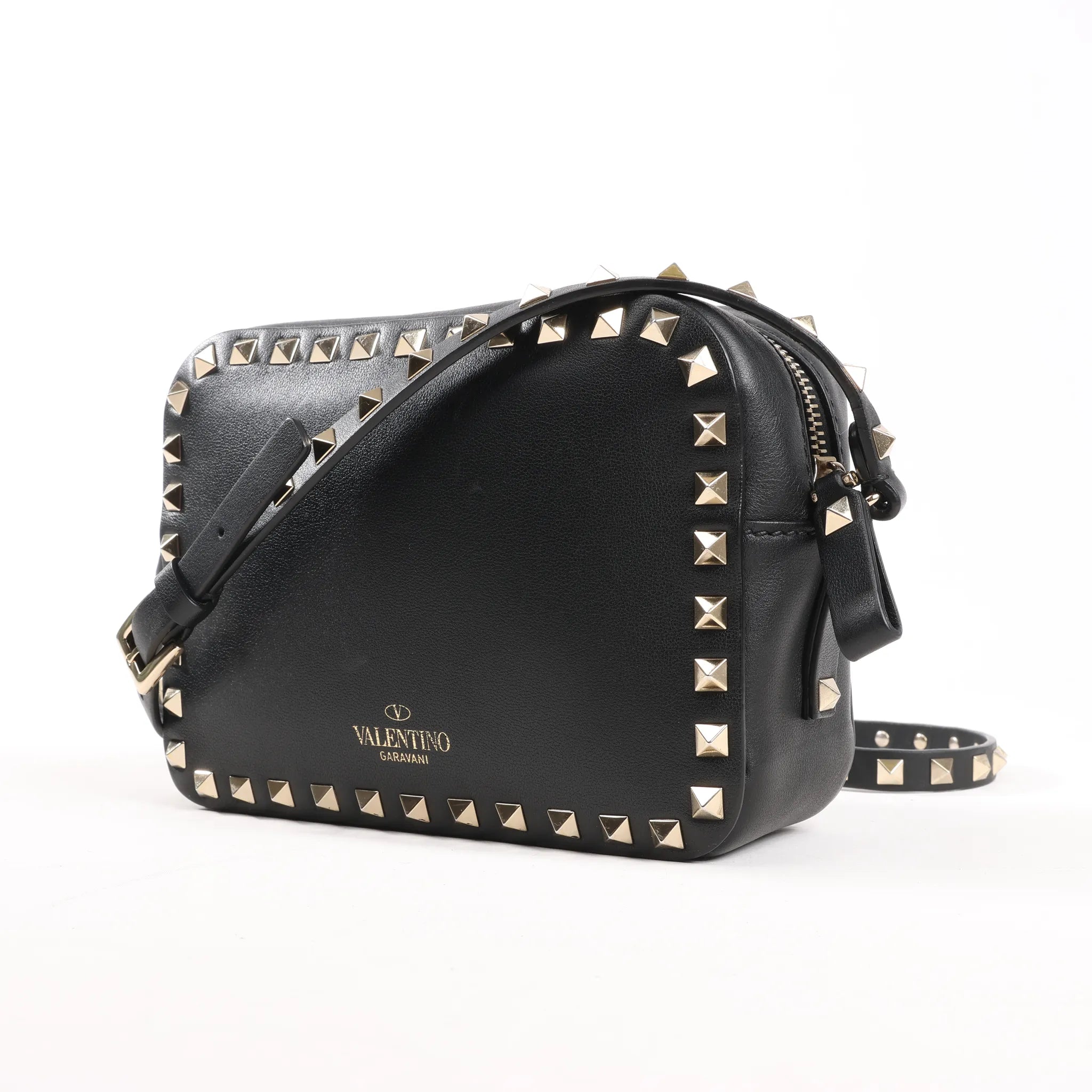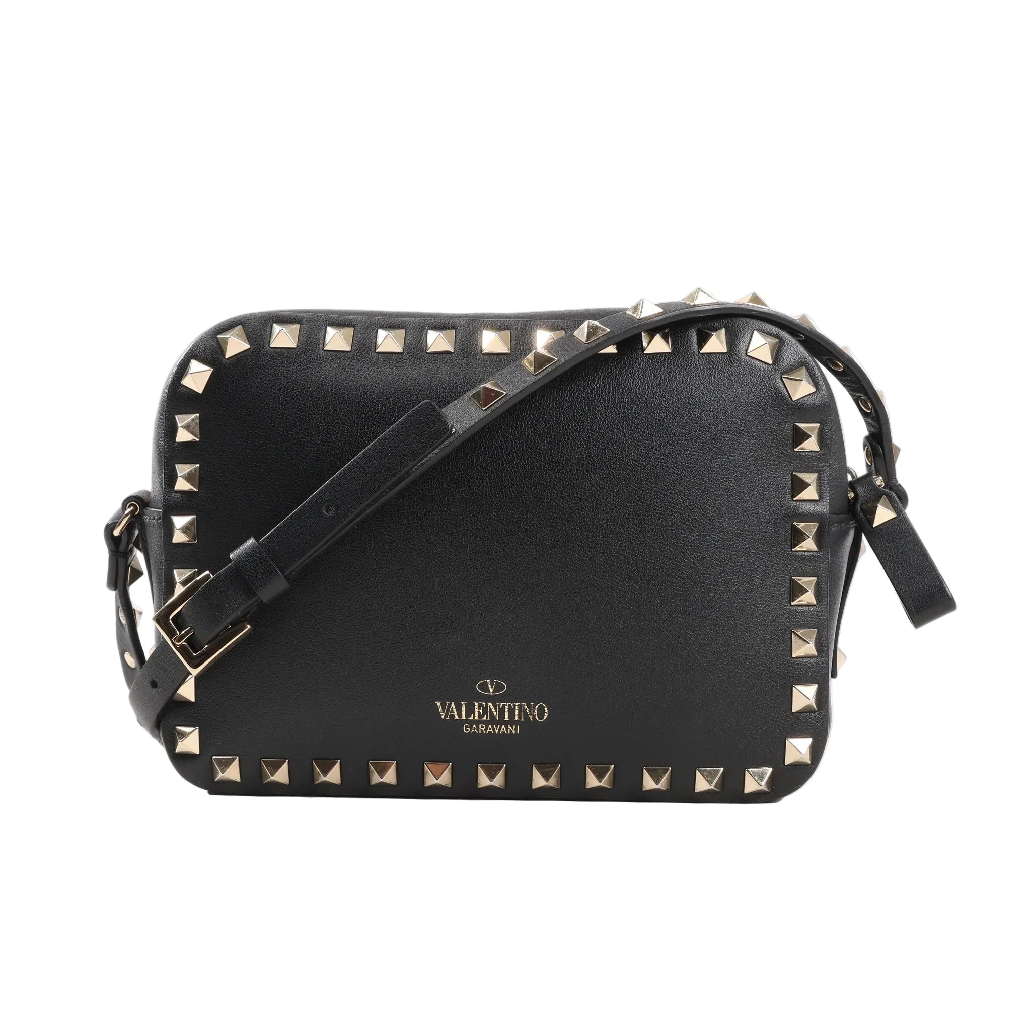 Brand: Valentino GaravaniModel: Rockstud Size: -Width: 18.5 cmHeight: 14 cm Exterior Condition: ExcellentInterior Condition: ExcellentCondition Details: The exterior leather remains clean and beautiful with small scratches. The shoulder strap is in great condition. The hardware is bright and shiny with hairline surface scratches. The interior lining is clean and overall in great condition, except some dust.Colour: BlackInterior Colour: BlackHardware Colour: GoldMaterial: LeatherComes With: -