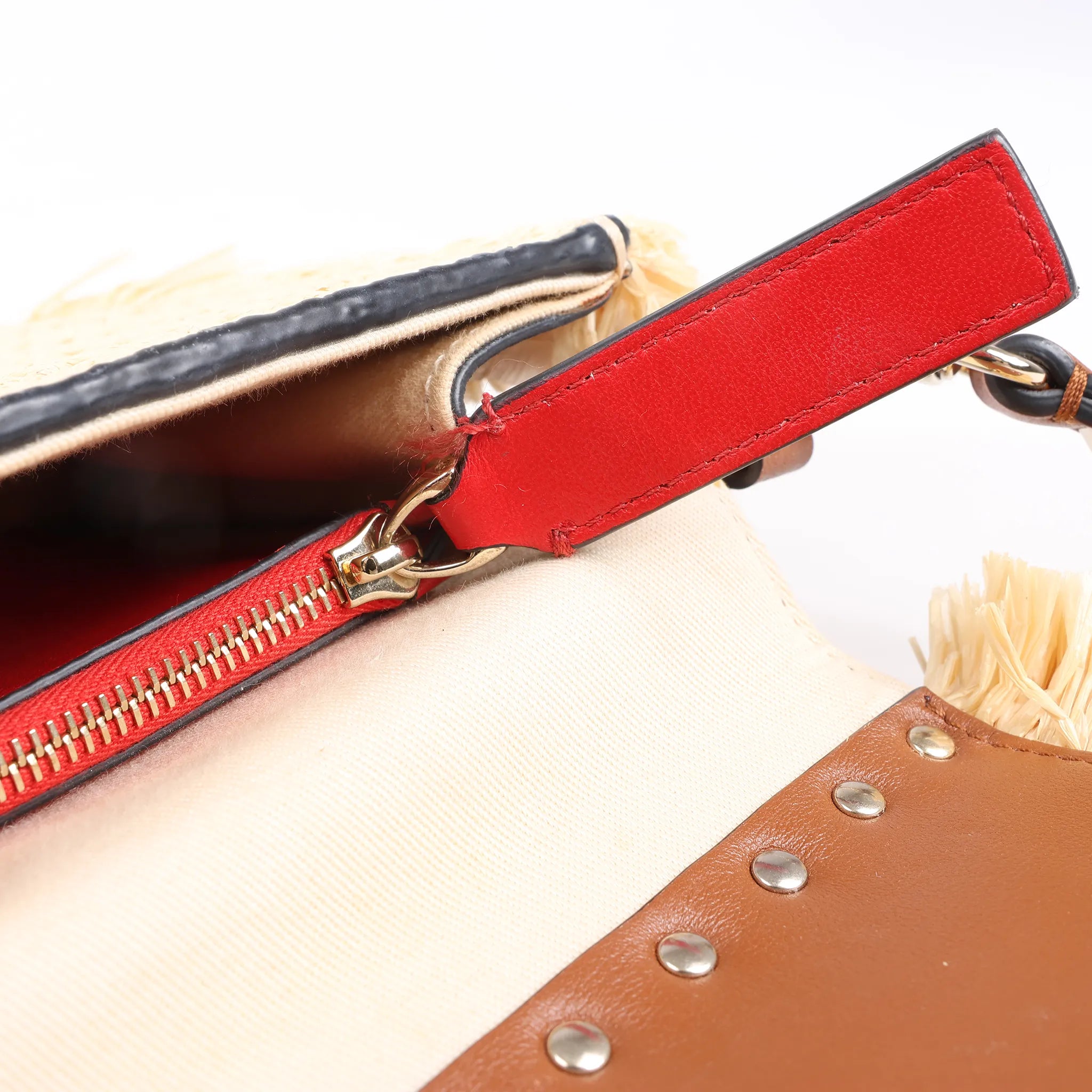 Valentino Garavani Valentino Garavani Straws x Leather Shoulder bag Beige x Brown