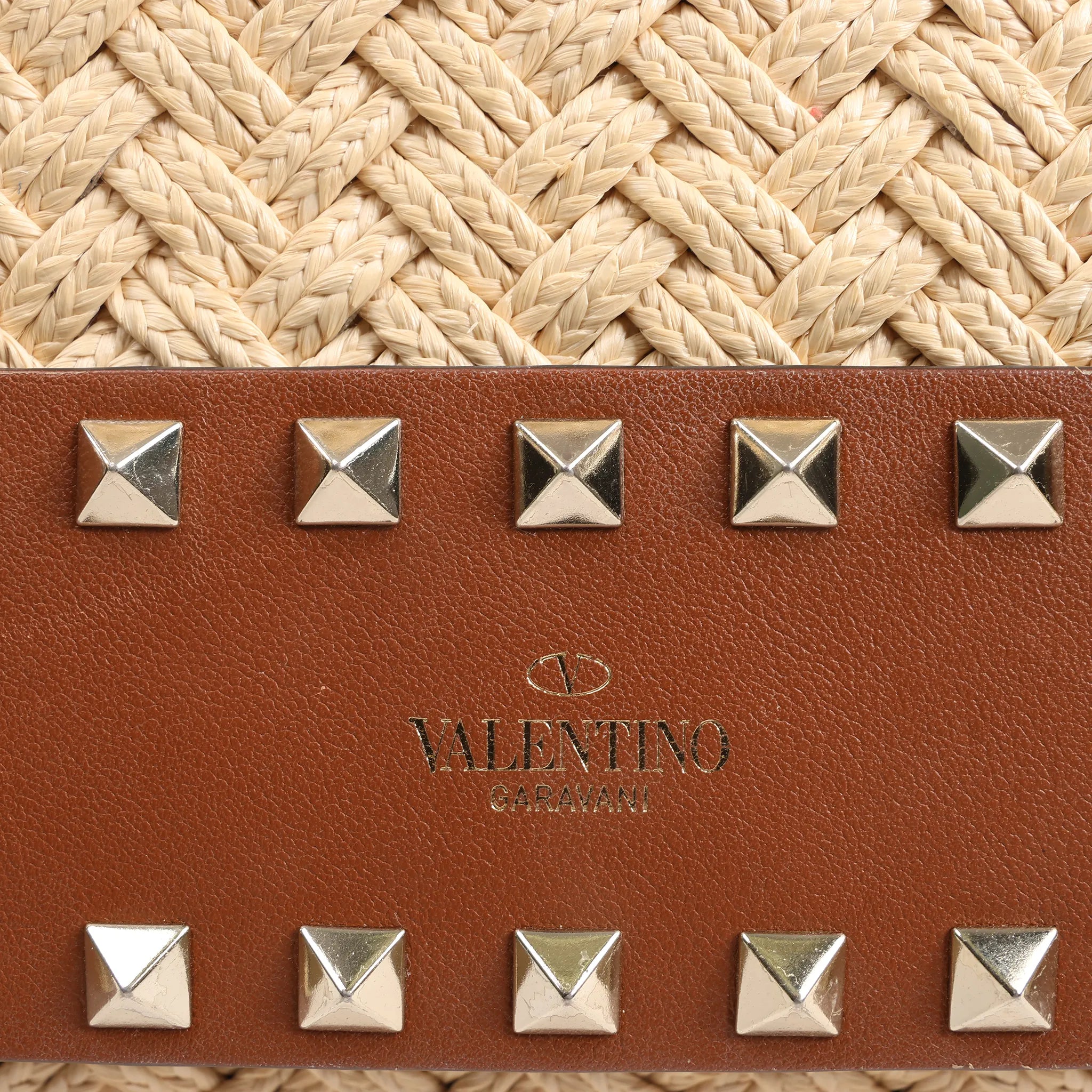 Brand: Valentino Garavani Model: -Size: -Width: 19 cmHeight: 15.5 cmExterior Condition: ExcellentInterior Condition: ExcellentCondition Details: The exterior is in excellent condition with some scratches. The strap is clean and firm. The hardware is bright and crisp, but wtih light hairline scratches. The interior is in great condition.Colour: Beige, BrownInterior Colour: Beige, RedHardware Colour: GoldMaterial: Leather, StrawsComes With: Shoulder strap, dustbag, brand tag, paper, extra studs
