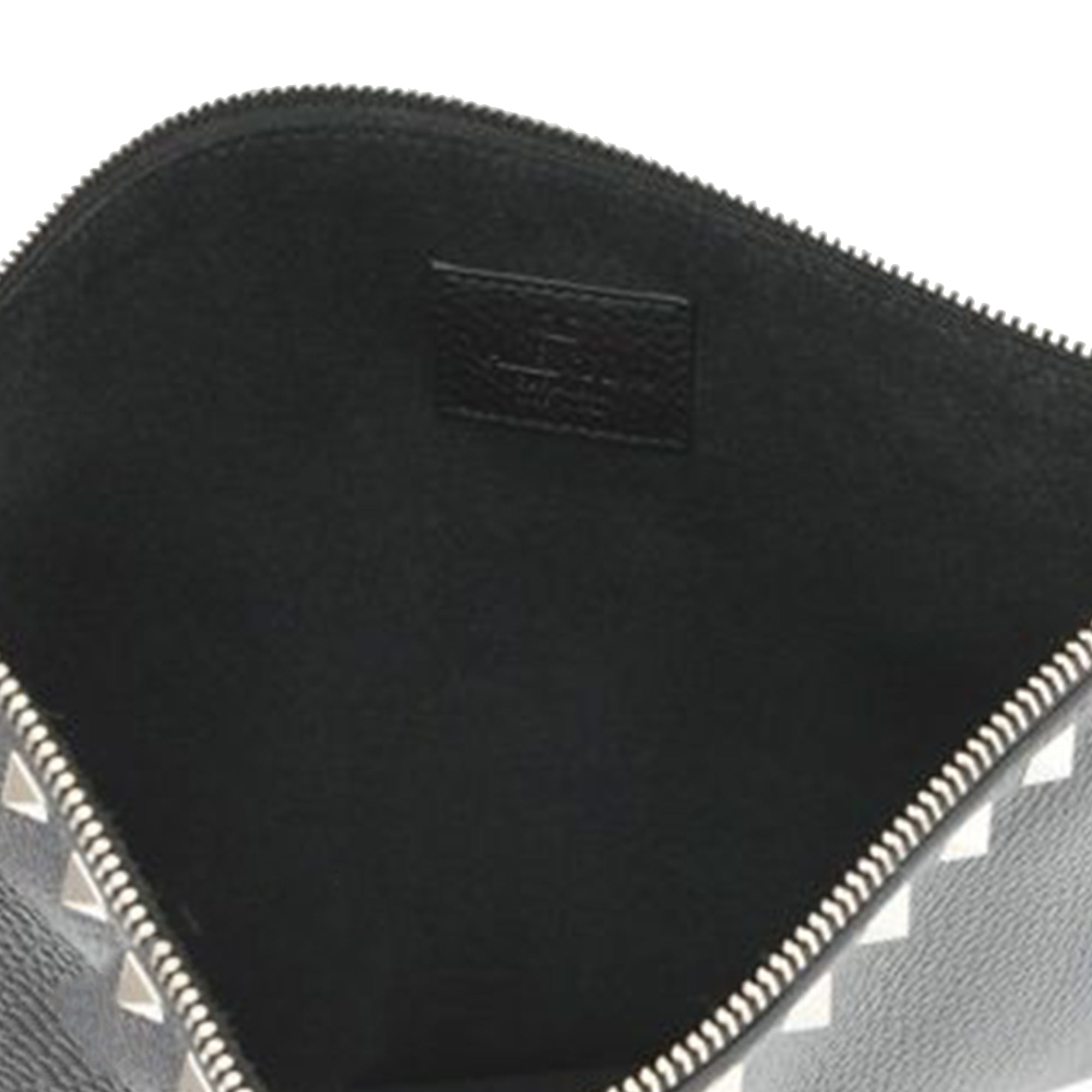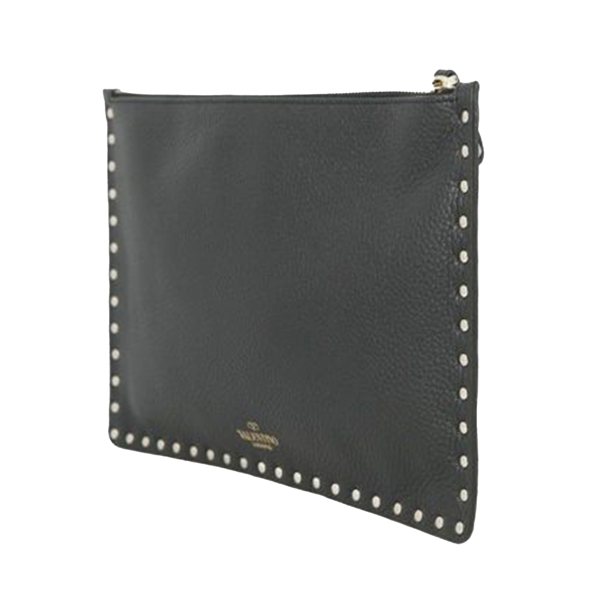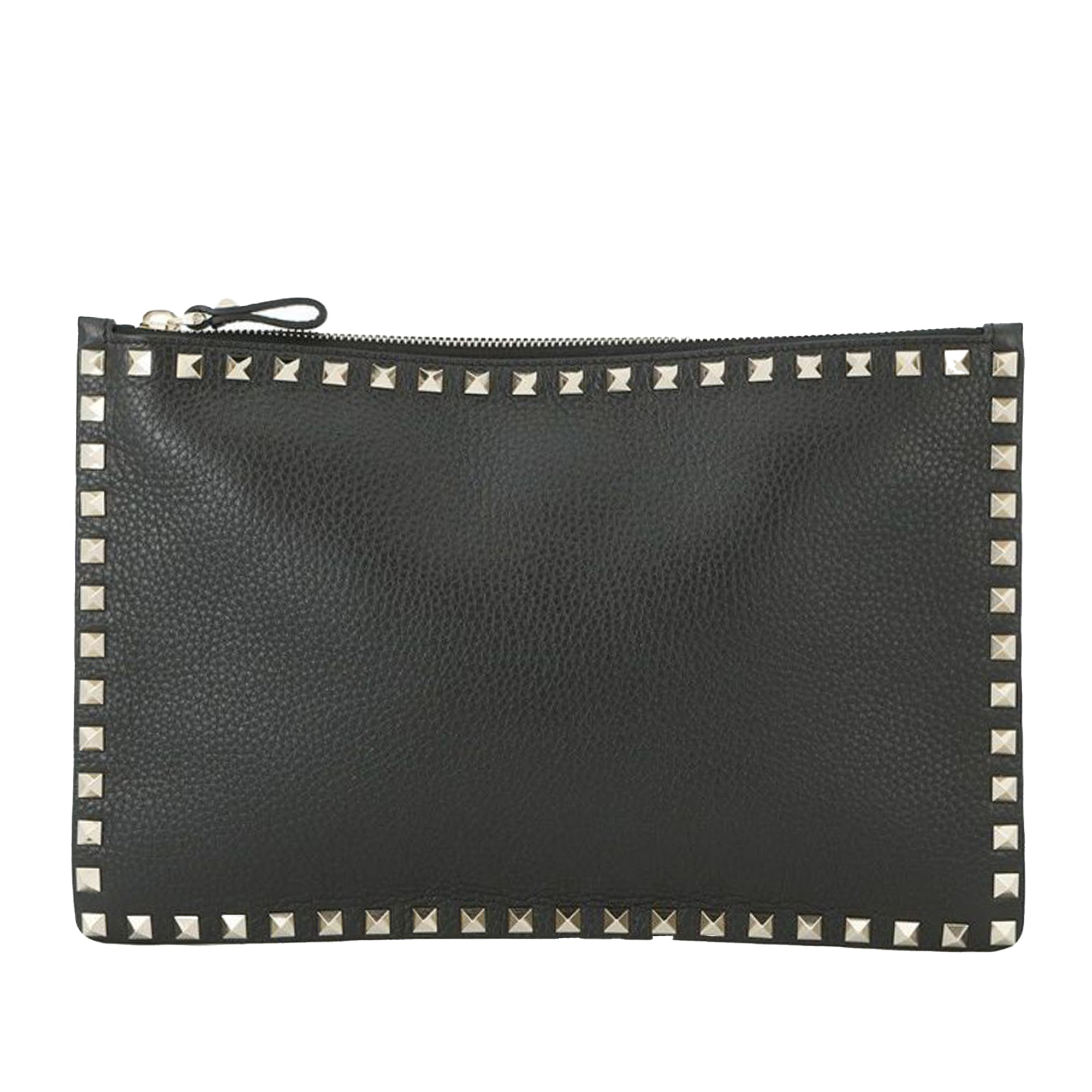 This clutch features a studded leather body and a top zip closure. Inclusion: Dust bag, box. Retail Price: 695.00