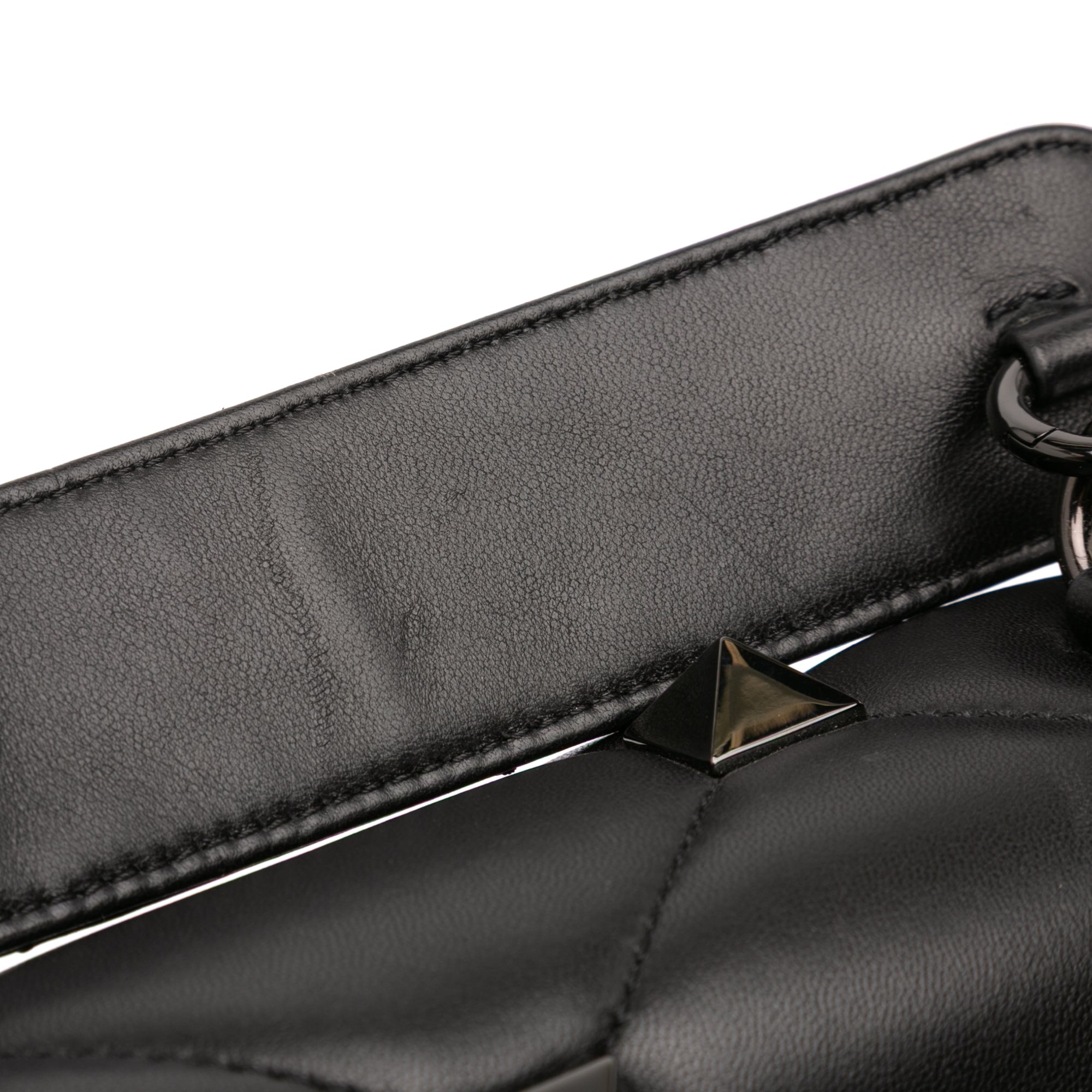 This satchel features a studded and quilted nappa leather body, a flat leather handle, a removable chain shoulder strap, a front flap with twist lock closure, and interior zip and slip pockets. Inclusion: Dust bag. Retail Price: 4750.00