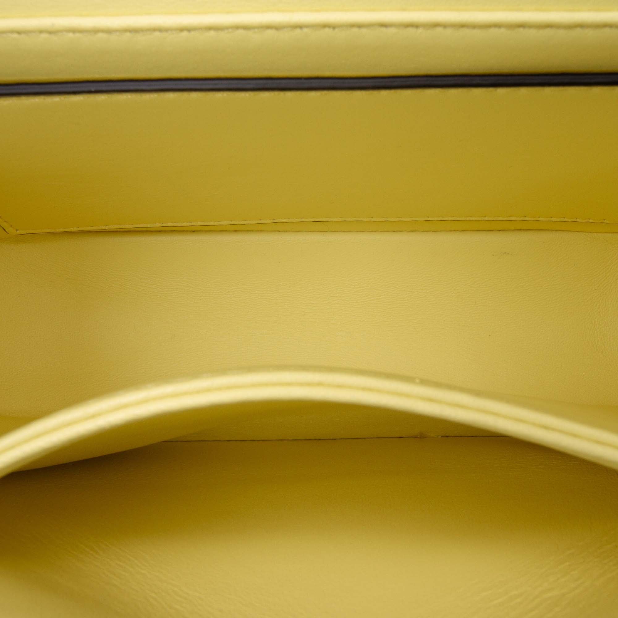 This shoulder bag features a leather body, a chain link strap, a front flap with magnetic snap closure, and interior slip pockets. Inclusion: Dust bag. Retail Price: 3550.00