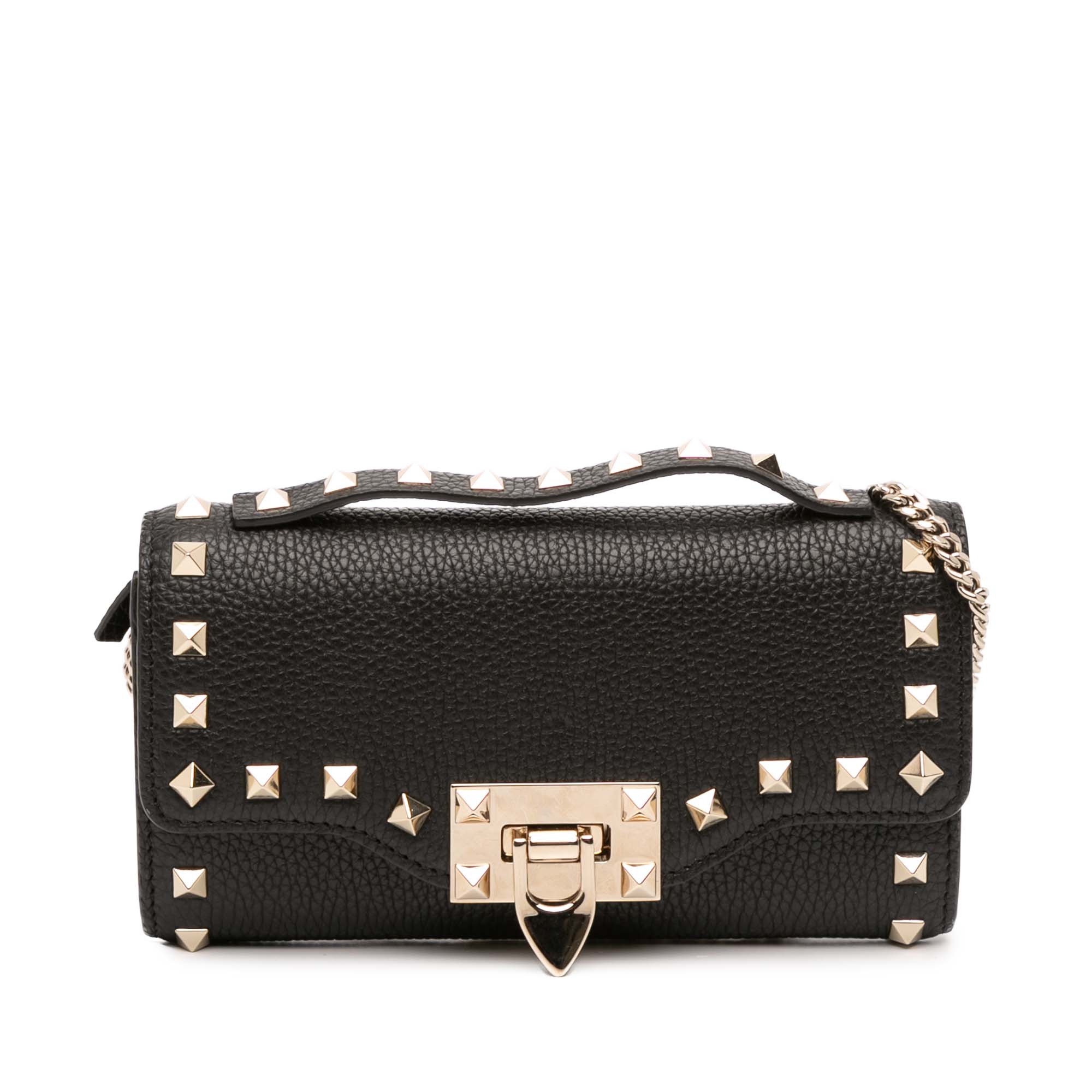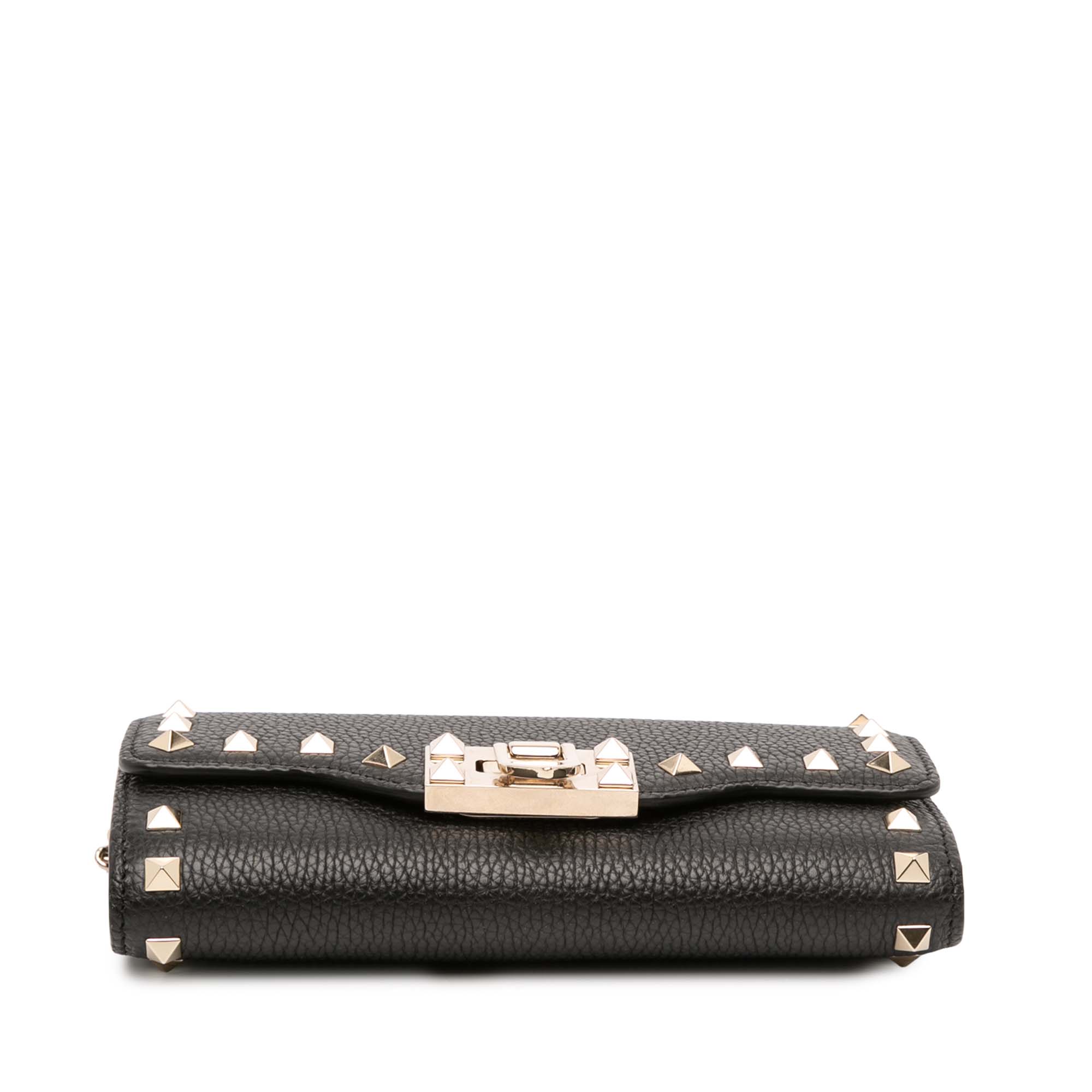 Valentino Pebbled Calfskin Rockstud Flip Lock Wallet On Chain