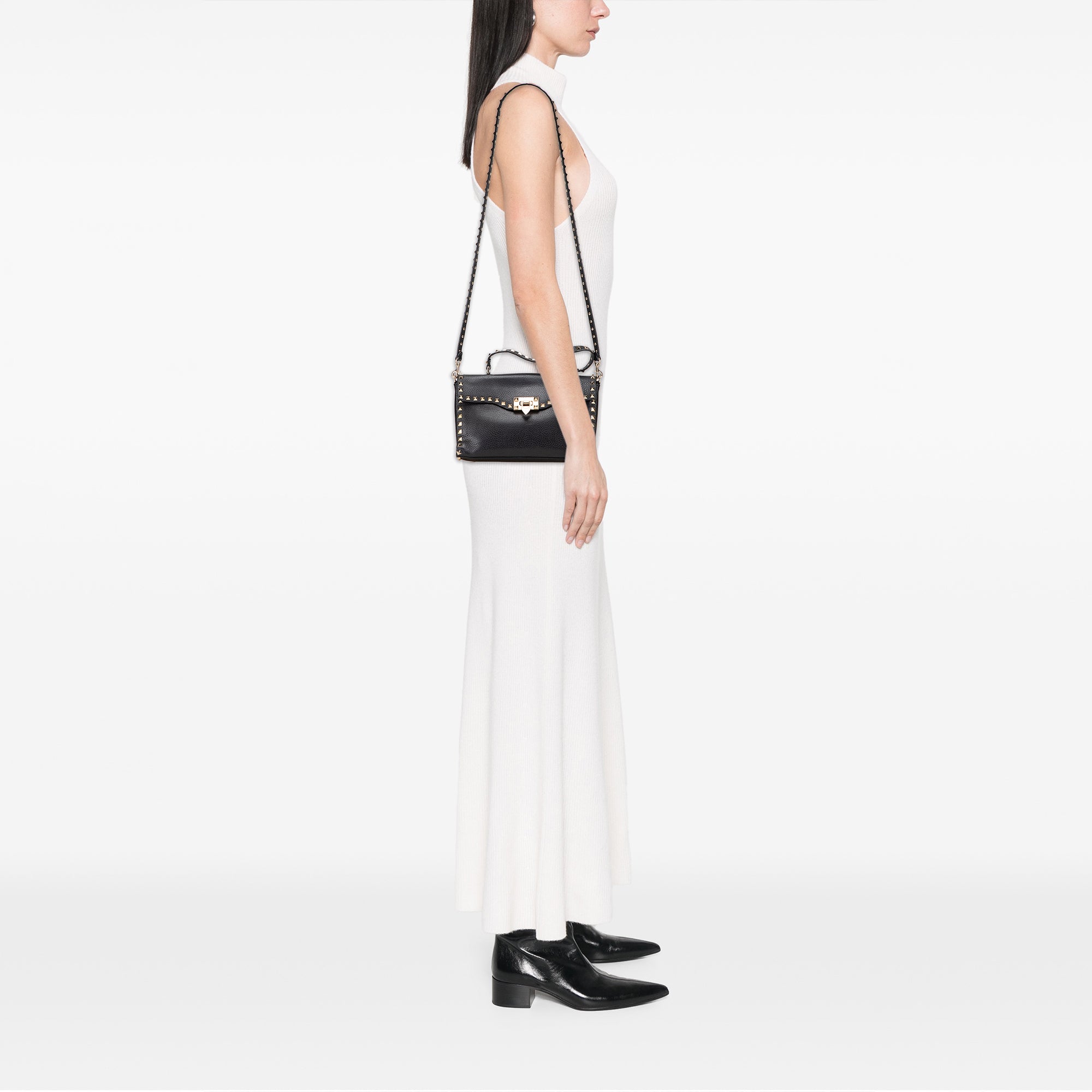 Valentino Small Pebbled Calfskin Rockstud Single Handle Flap