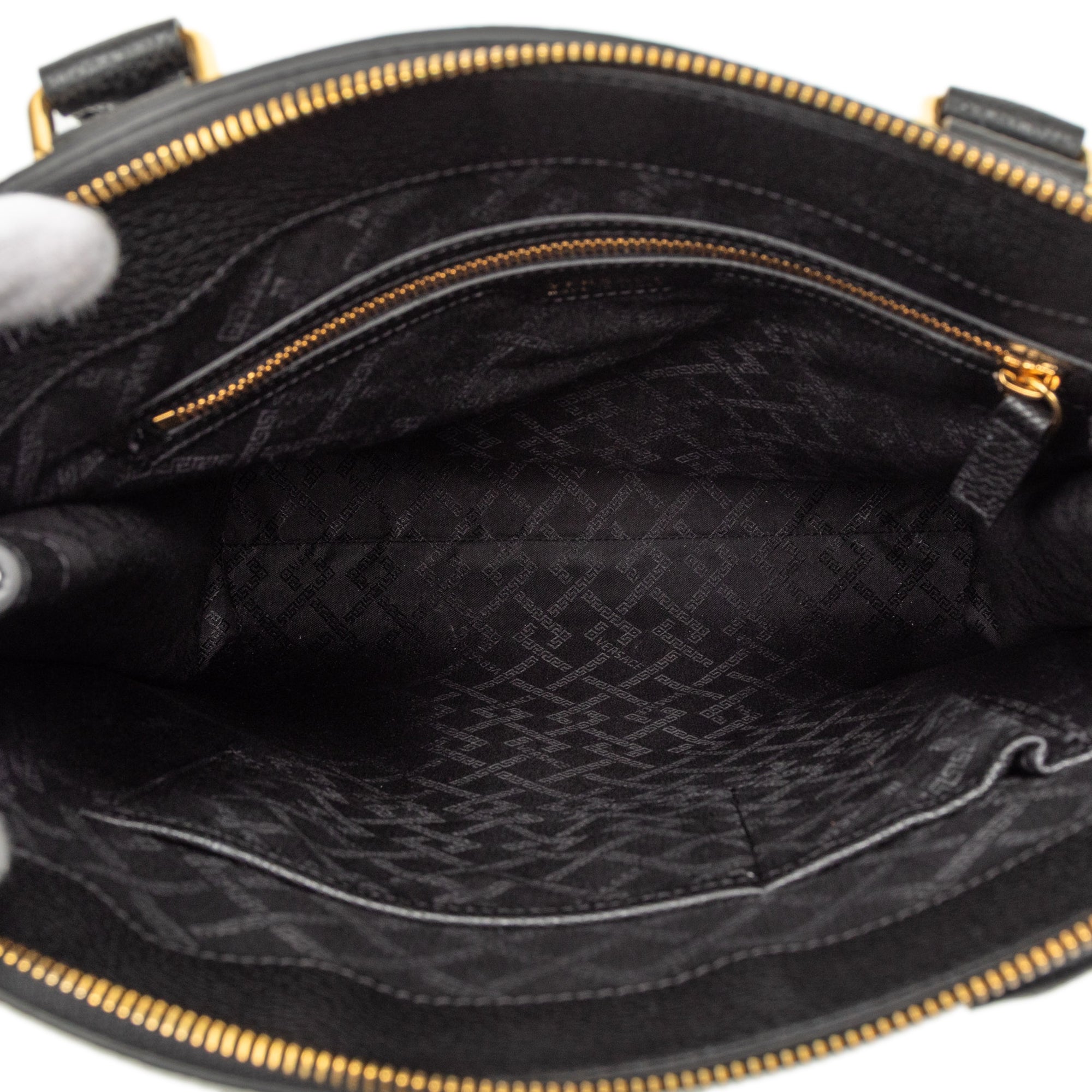 This tote bag features a leather body with gold-tone hardware, rolled leather handles, a top zip closure, an exterior slip pocket, and interior zip and slip pockets. Retail Price: 1700.00