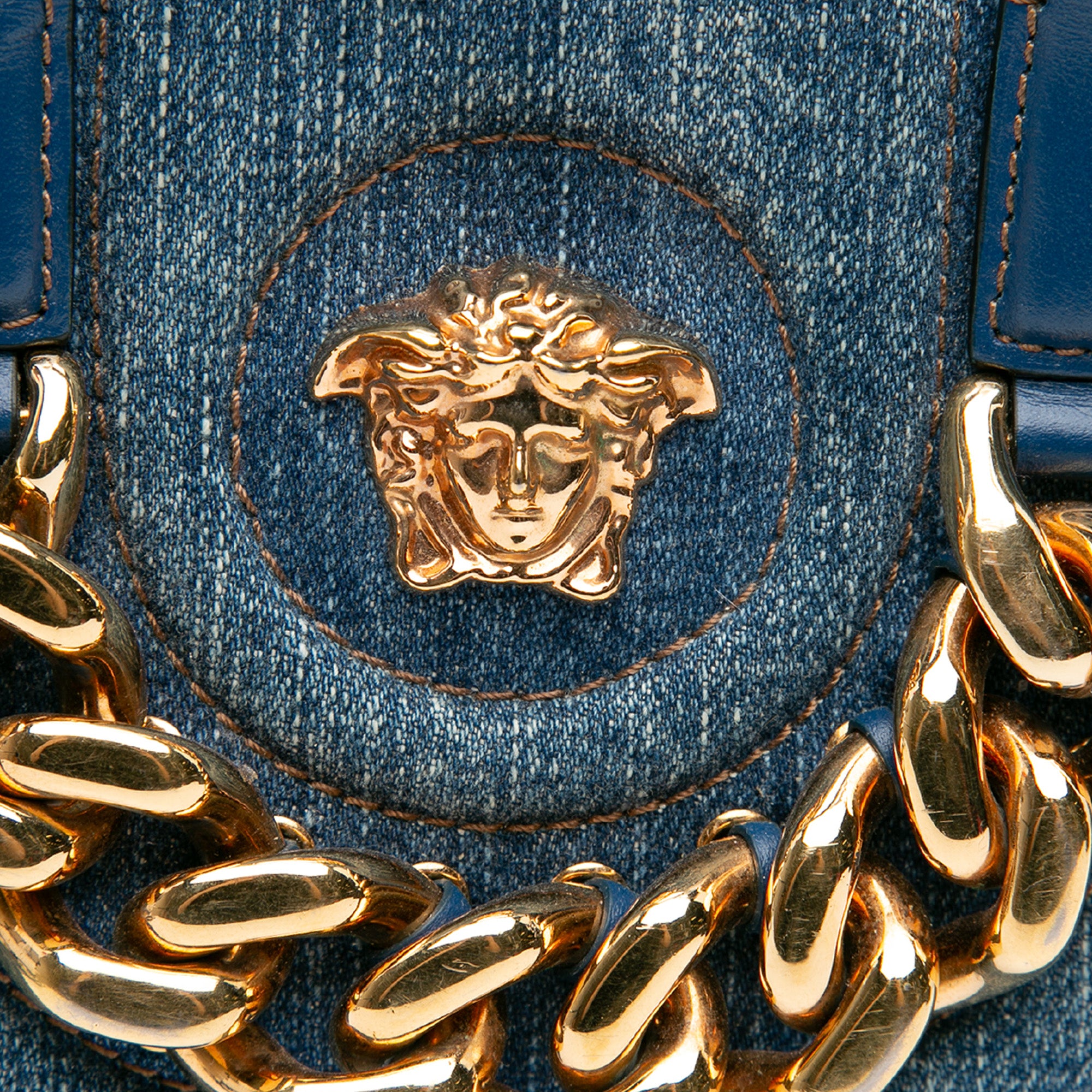 Versace Small Denim La Medusa Chain Top Handle Bag
