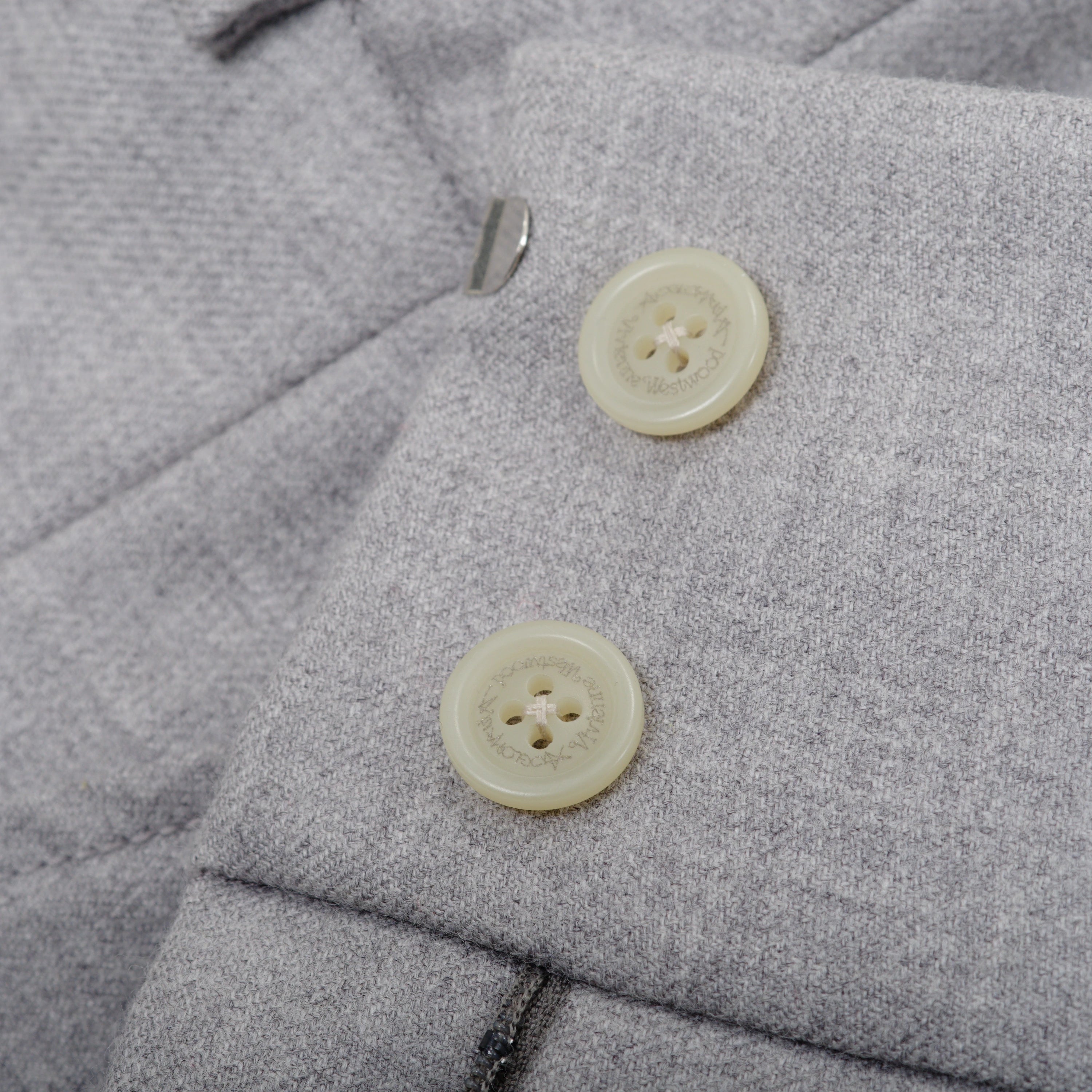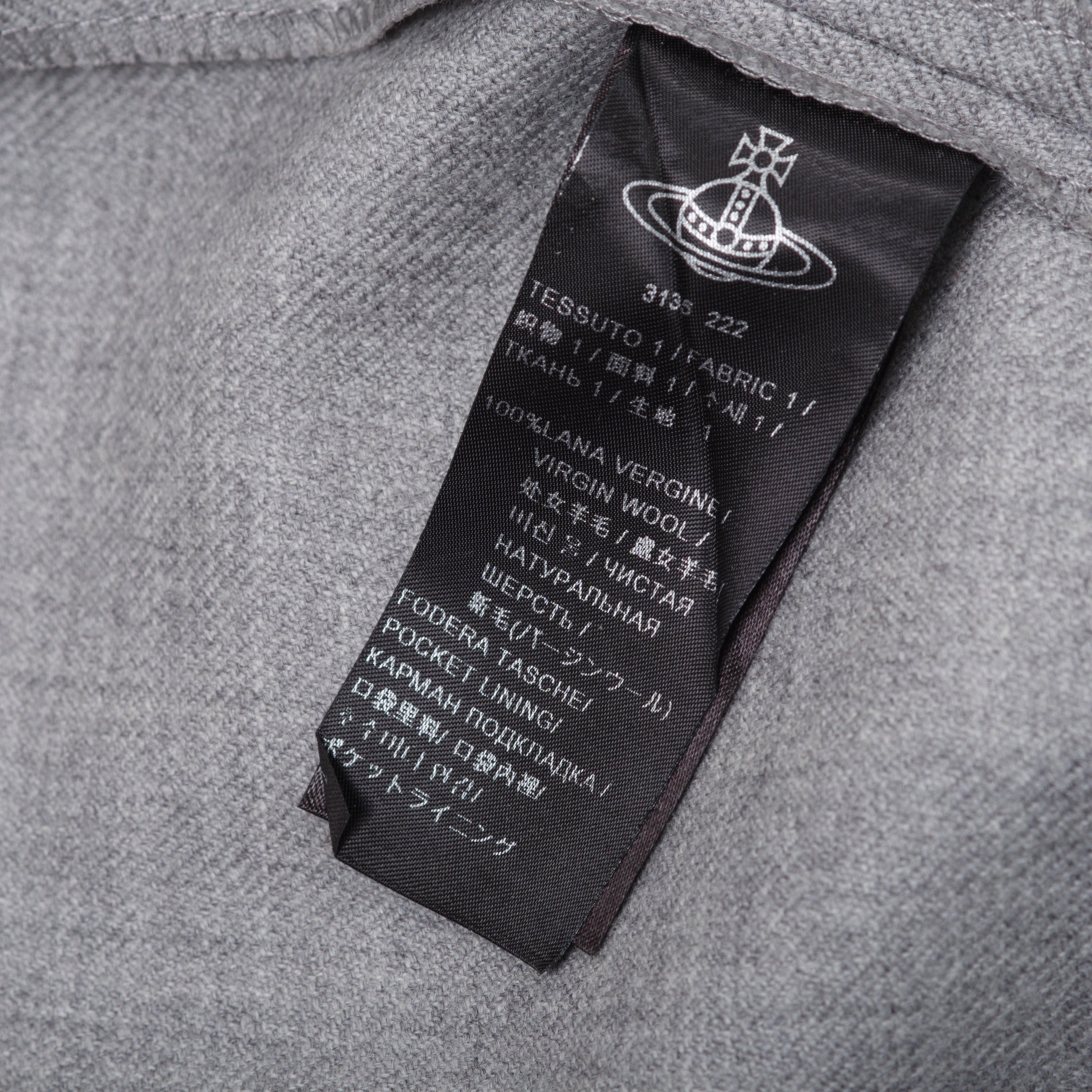 The refined grey fabric offers movement and comfort, while the high waist enhances the figure in a balanced way. A Vivienne Westwood piece with an authentic character.