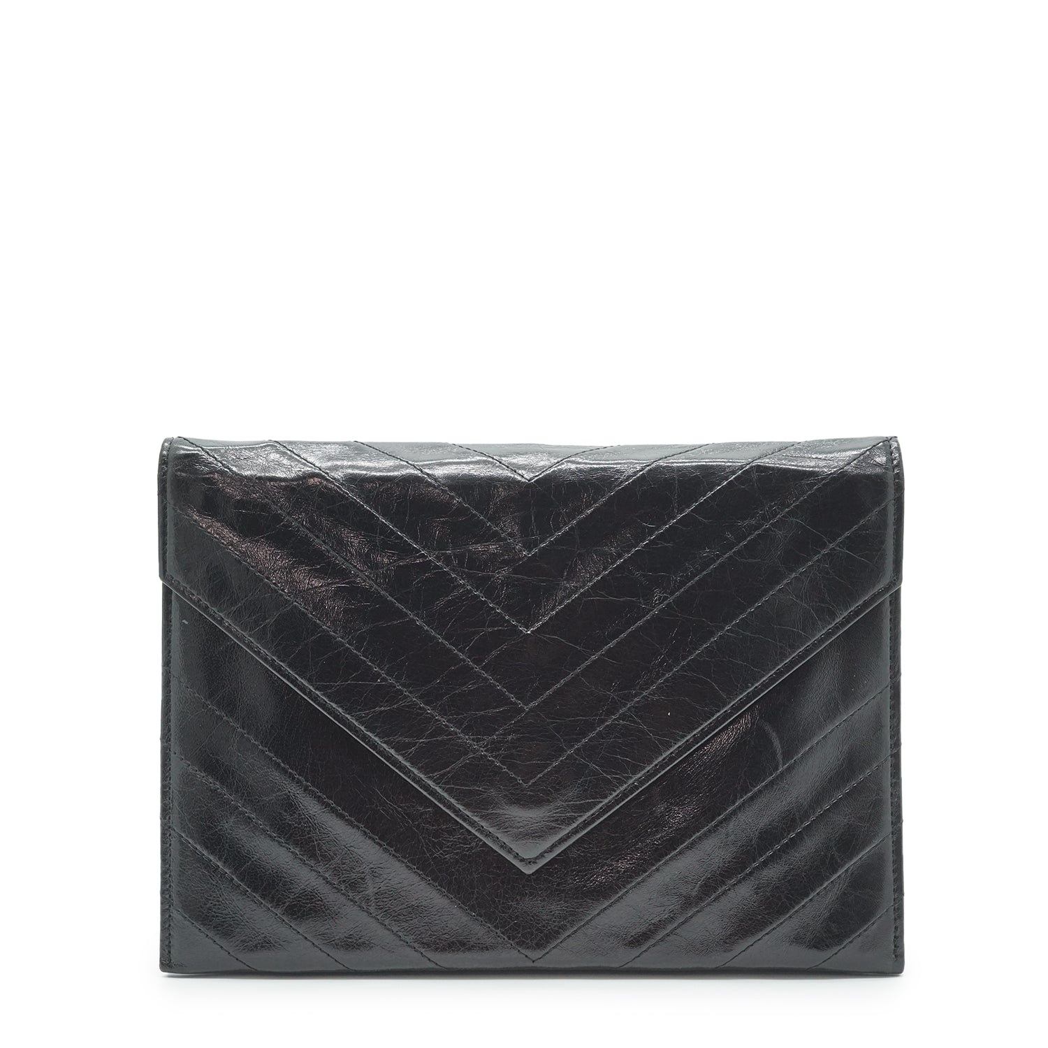 Vintage Envelope Clutch Black LeatherDepth: 6cmHeight: 17.5cmWidth: 24.5cmWidth at Top: 24cmOutside Rank: BCInside Rank: BStain: Some brown stains on the inside fabric (middle pocket)Scratch: Corner rub, some scratches on the frontPeeling: Some leather creasing overallWorn: Some signs of wear overallOdor: Slight storage smellInclude: Dust bagSKU: 7060196