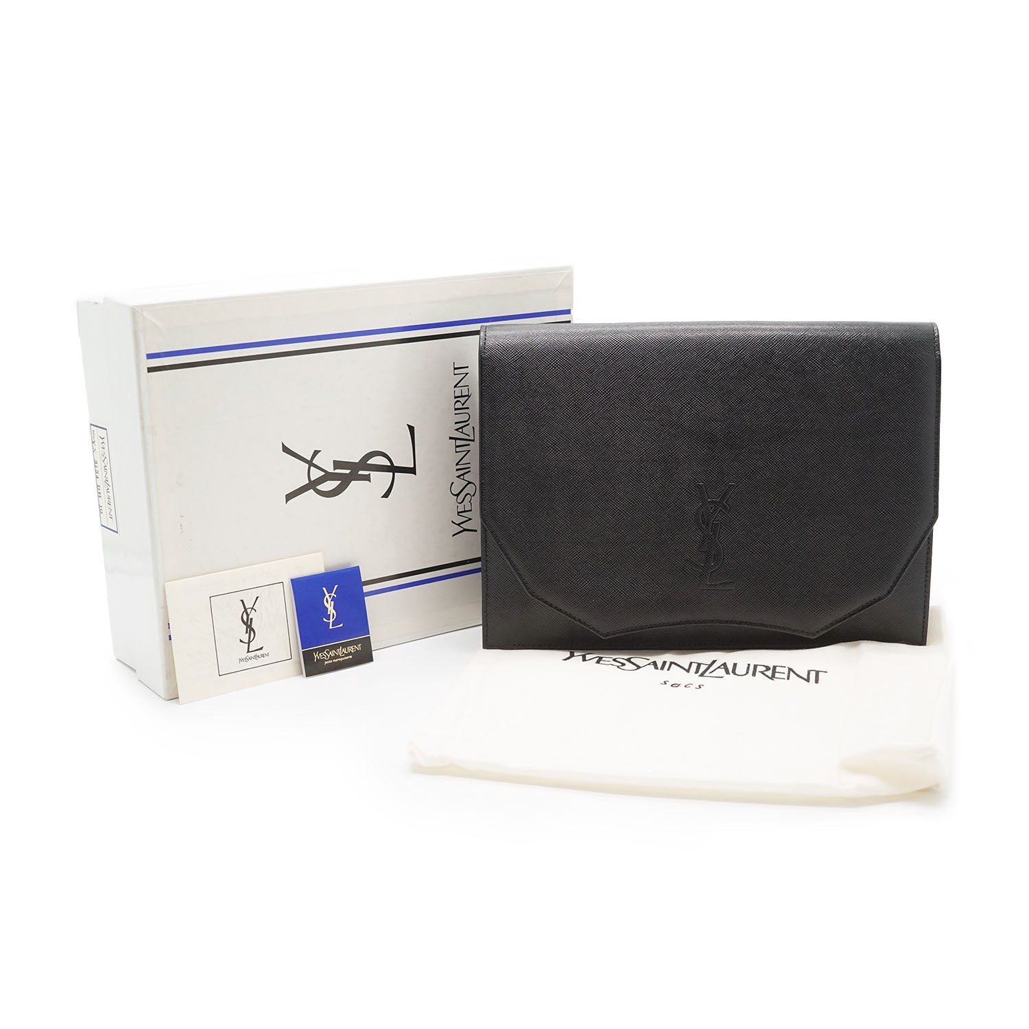 Vintage YSL x Ajioka Flap Clutch Black LeatherDepth: 5cmHeight: 18cmWidth: 24.5cmBOutside Rank: BInside Rank: ABScratch: Minor corner rub, some scratches on the hardwareWorn: Minor signs of wear on the outside (corners)Odor: No odor presentInclude: Box, dust bag, original tag, leafletSerial code: YX 3134 BH 10SKU: 7070079