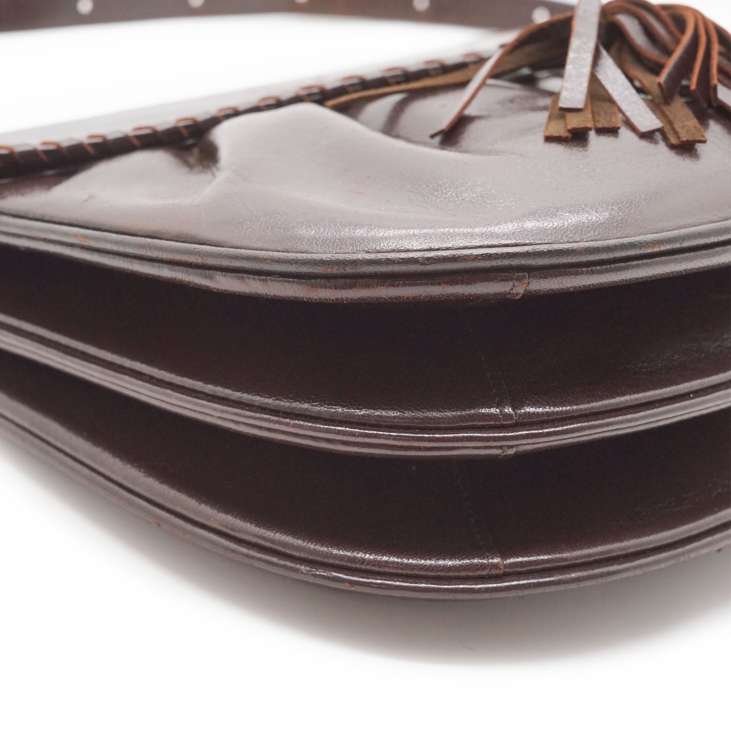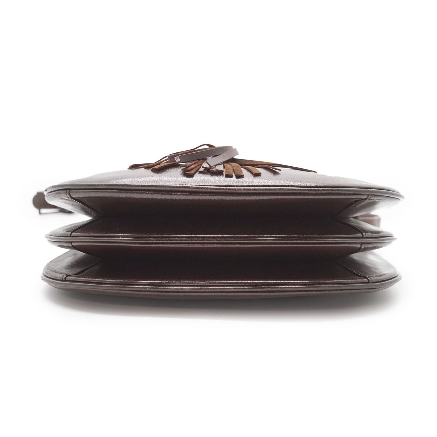 YSL Tassel Shoulder Bag Dark Brown LeatherDepth: 10cmHeight: 24cmWidth: 26.5cmShoulder Drop: 35.5cmCOutside Rank: BCInside Rank: BDiscoloration: Some leather discoloration on the strap, hardware tarnishScratch: Corner rub with visible scratch on one side, some rubbing marks/scratches overall (front flap, back, strap)Peeling: Some leather cracking/peeling on the strapWorn: Previous use evidentOdor: Slight storage smellComments: The front tassel is sligthly detaching on some areas (some leather cracks)SKU: 7060190