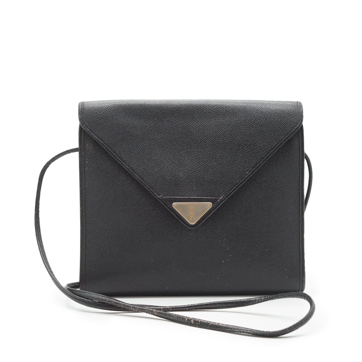 YSL Vintage Square Envelope Crossbody Bag Black LeatherDepth: 3cmHeight: 21cmWidth: 23.5cmShoulder Drop: 52cmCOutside Rank: BCInside Rank: BDiscoloration: Visible hardware tarnish (front logo plate)Scratch: Some scratches/rubbing marks overall (strap, front, back, hardware)Peeling: Some leather peeling on the strapWorn: In generalOdor: No odor presentComments: The zipper of the inside pocket is stiff/hard to open and closeSKU: 7060192