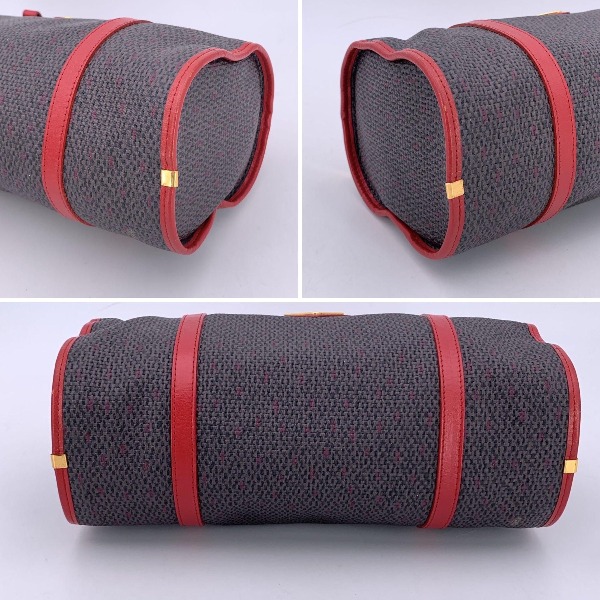 Striking And Sculptural, This Vintage Yves Saint Laurent Round Handbag Is a Rare Find That Blends Bold Design With Refined Detail. Crafted From Grey Textured Leather And Accented By Rich Red Leather Trim, The Bag's Unique Circular Silhouette Is Both Eye-catching And Timeless. A Gold Metal Triangle Tab On The Front Adds a Touch Of Signature Ysl Glamour, While Front Open Pockets Offer Quick Access To Essentials. The Upper Zip Closure Opens To Reveal a Black Fabric-lined Interior, Complete With a Side Zip Pocket For Added Organization. Finished With Double Top Handles For Easy Carrying, It Balances Structure And Style Effortlessly. Inside, The Classic 'Yves Saint Laurent - Made In France' Tag Marks Its Place In Fashion History - a Statement Piece From An Era Where Craftsmanship And Creativity Went Hand In Hand.