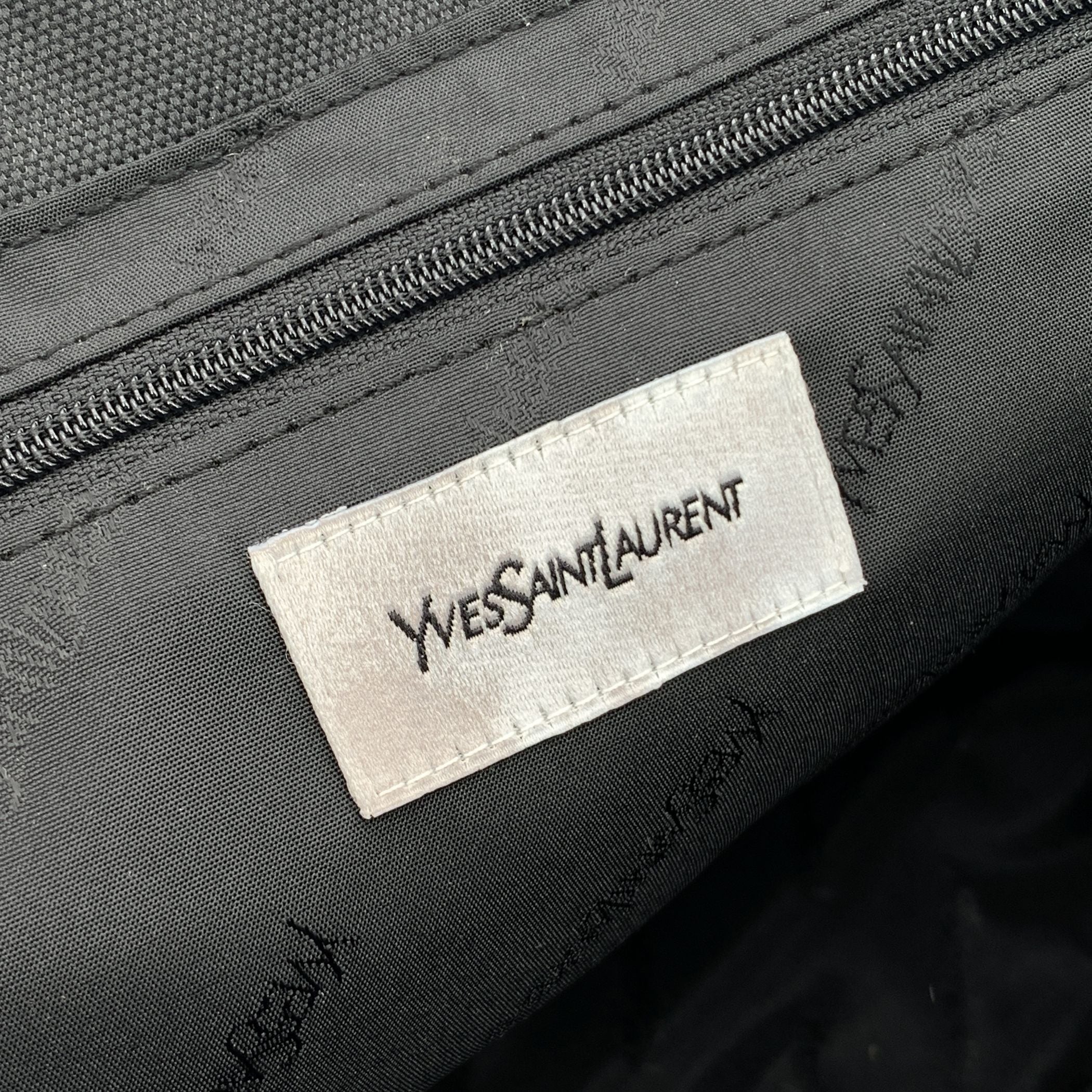 Understated, Refined, And Undeniably Rare, This Vintage Yves Saint Laurent Pour Homme Tote Captures The Quiet Confidence Of Ysl's Menswear Line In a Form That Still Feels Effortlessly Modern. Crafted From Durable Black Nylon Canvas And Accented With Sleek Black Leather Trim, This Tote Is a Functional Piece With Subtle Designer Distinction. At The Front, a Silver Metal Yves Saint Laurent Tab Adds a Discreet Touch Of Luxury, While The Magnetic Button Closure Opens To Reveal a Black Nylon Canvas Lining-clean, Simple, And Timeless. Inside, a Zip Pocket Offers Secure Storage, And The Original 'Yves Saint Laurent' Tag Affirms The Bag's Authenticity. A True Collector's Bonus: The 'Yves Saint Laurent Pour Homme' Shop Hang Tag Remains Thoughtfully Attached, Hinting At The Bag's Pristine And Possibly Unused